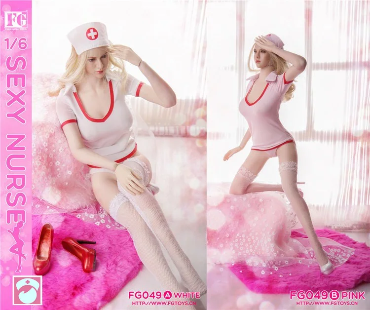 FG049A/B 1/6 A White/B Pink Balance Nurse Dress F Woman Skirt figure clothing For 12 "Action Figure Toys Accessories