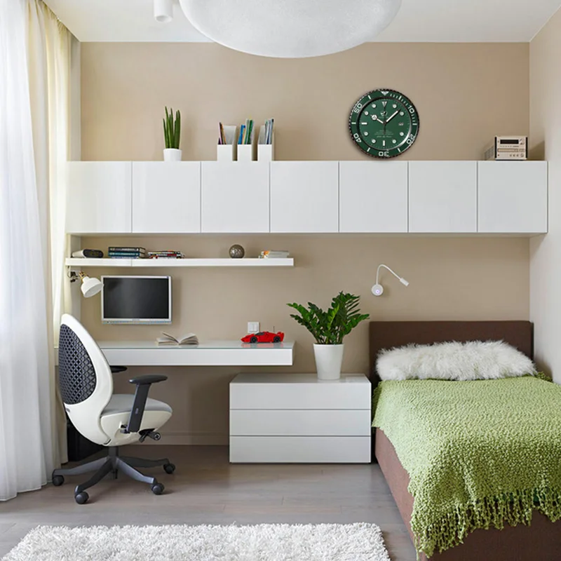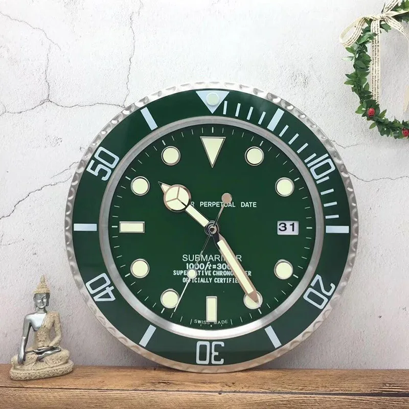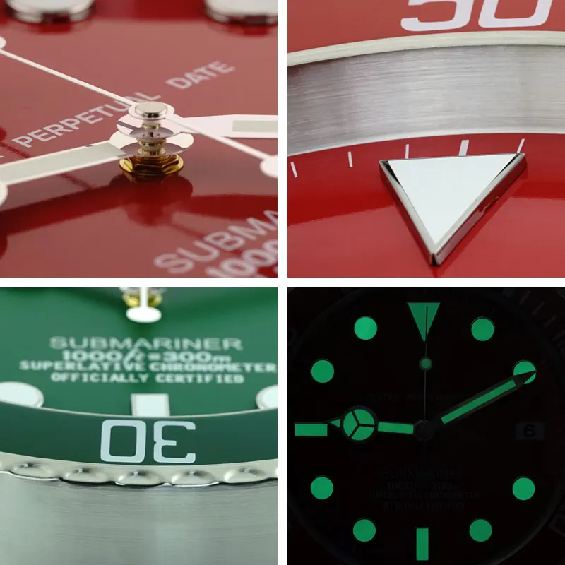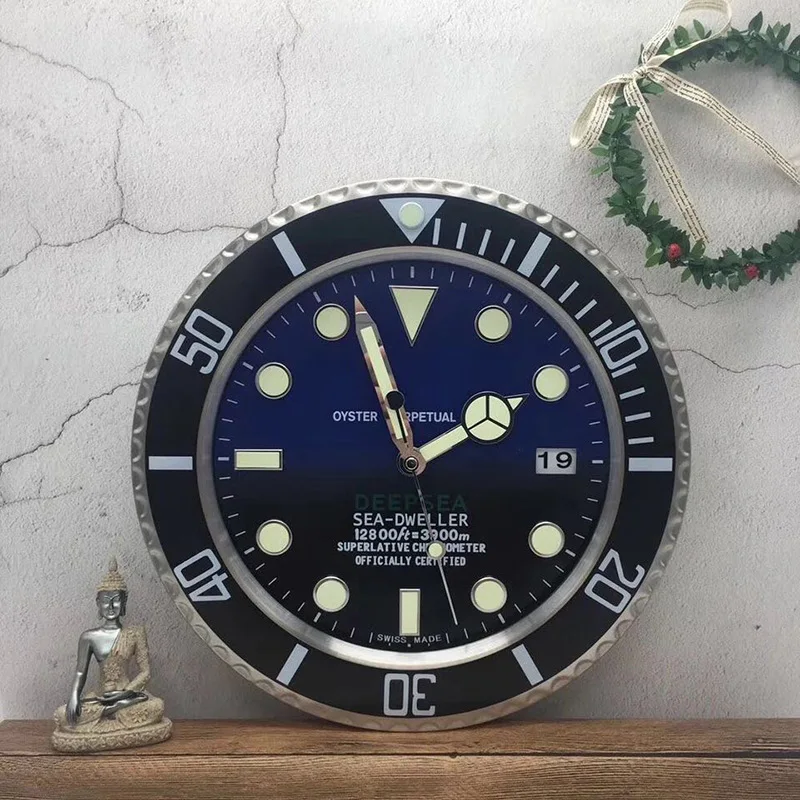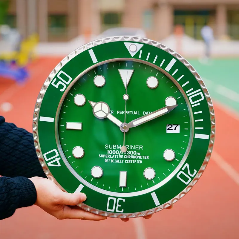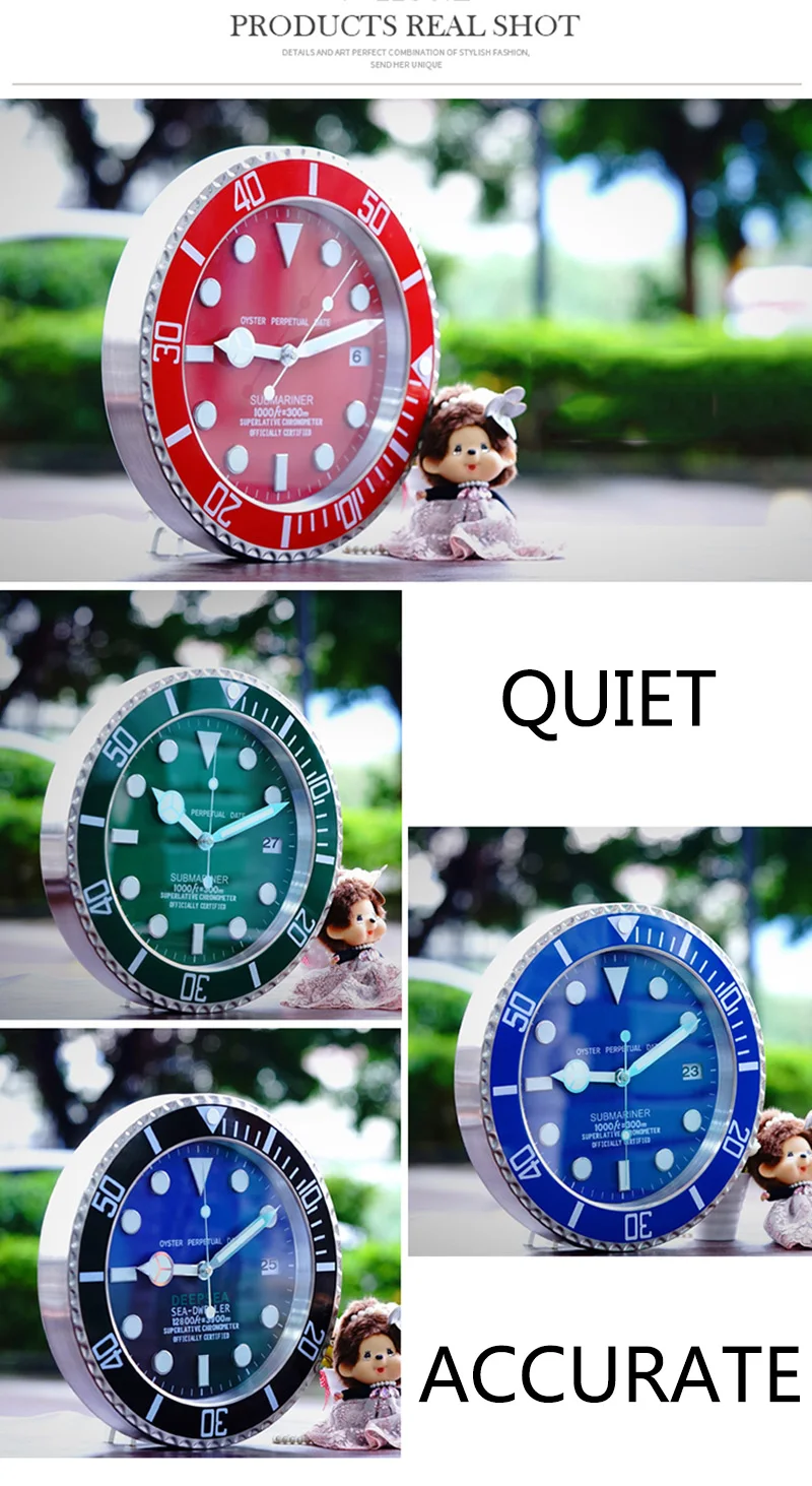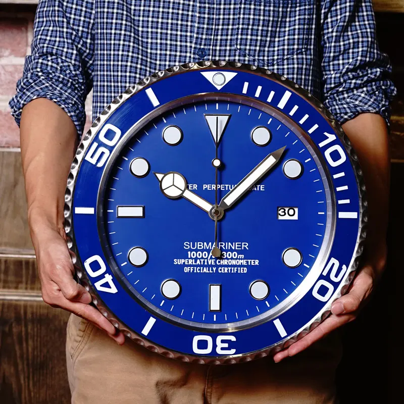 Features: Stainless Steel & Aluminium Case Construction Plastic Polycarbonate Dial with 3D printed details Convex (Curved) Shaped Mineral Glass Crystal Raised Bezel Markers (Stamped Steel) 3D Raised Subdial Chrono Rings 3D Raised Markers on Dial with Lume Sweeping Seconds Hand (Sweeping Quartz movement) 3 Functional Subdials Clock dial and numbers with Luminous function Specification: Type: Luxury Wall ClocK Size: Dia 34 cm * Thickness: 6 cm Material: Metal & Glass Weight: 1.8 kg Size: 34cm Length Metal pointer with painting Powered by 1 piece AA battery, not alkaline battery ( not included ). Package Contents: 1 x Wall Clock