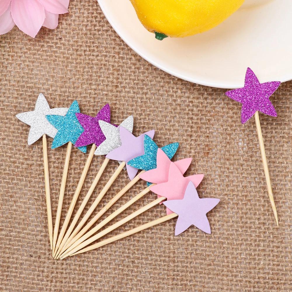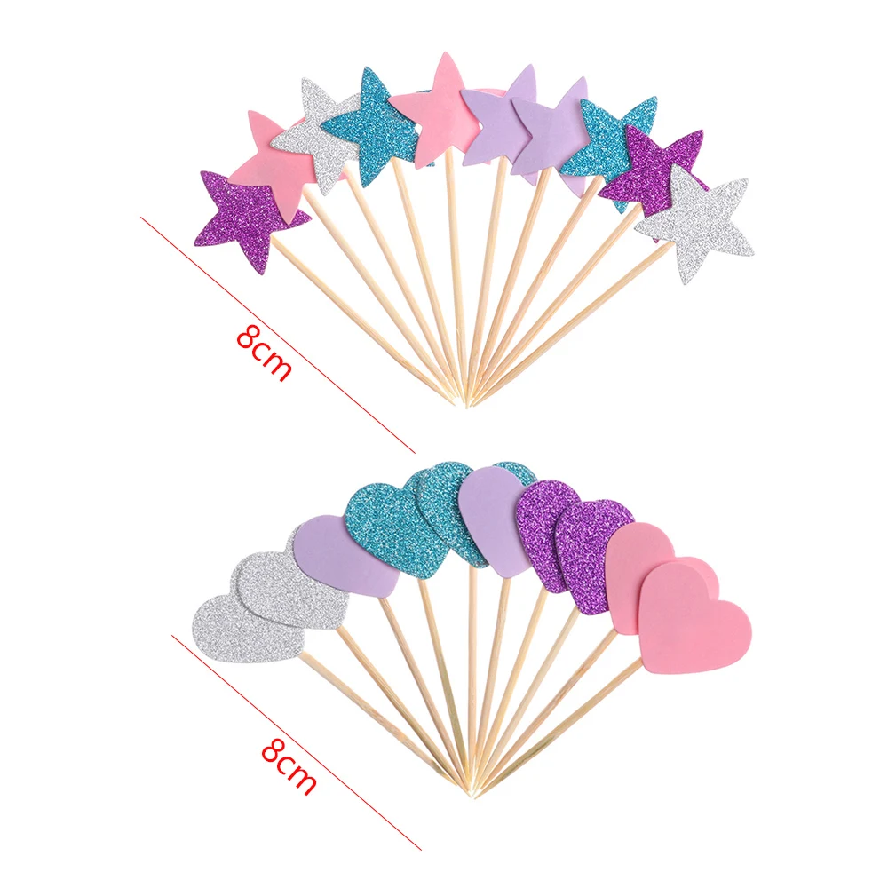 20 шт. новый милый Блестящий торт в форме сердца и звезды, украшения для кексов, украшения на день рождения, Детские сувениры, вечерние принадлежности, поделки своими руками