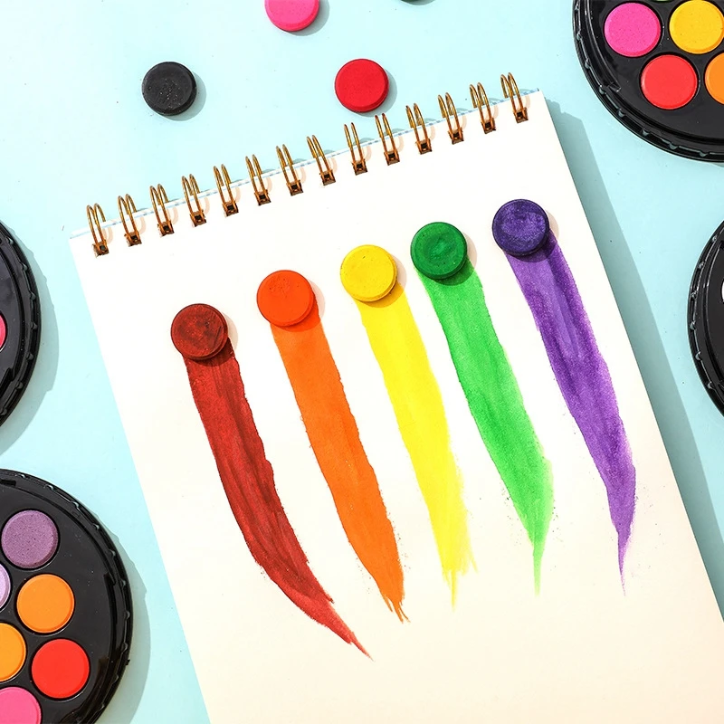 Название продукта: акварельный гуашь Пигмент Материал: пластик + гуашь Размер: около 12 цветов/11,5*11,5*1,8 см 24 цвета/11,5*11,5*2,7 см 36 цветов/11,5*11,5*3,6 см 48 цветов/11,5*11,5*4,5 см Стиль: четыре на выбор