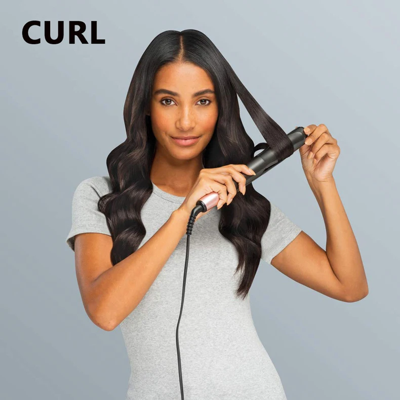 Конструкция «2 в 1, может работать как в качестве выпрямителя волос или щипцы для завивки волос. Скручивается, выпрямляется + создает любой стиль за считанные минуты, Узкие локоны, пляжные волны, гладкие и прямые стили