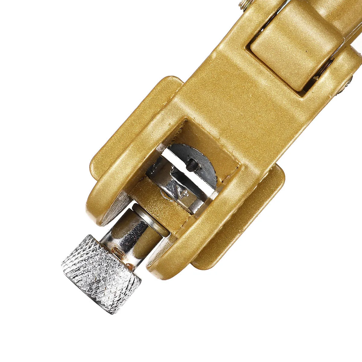 Легкий эргономичный дизайн, когда головка зазубрена, аккуратно нажмите мягкую фиксирующую ручку одной рукой, поверните фиксирующую ручку и отрегулируйте фиксатор Изогнутая конструкция ручки полностью отражает привычки и нагрузки, и она не вызовет усталость при использовании в течение длительного времени. Плавное нажатие, регулируемое вращение, стабильный угол и длительный срок службы Цвет: золото Материал: Высокоуглеродистая сталь + цинковый сплав Размер изделия: 180х70мм Тип цепи: R I P цепная пила и поперечная цепь Применение: вывернутая пилочка