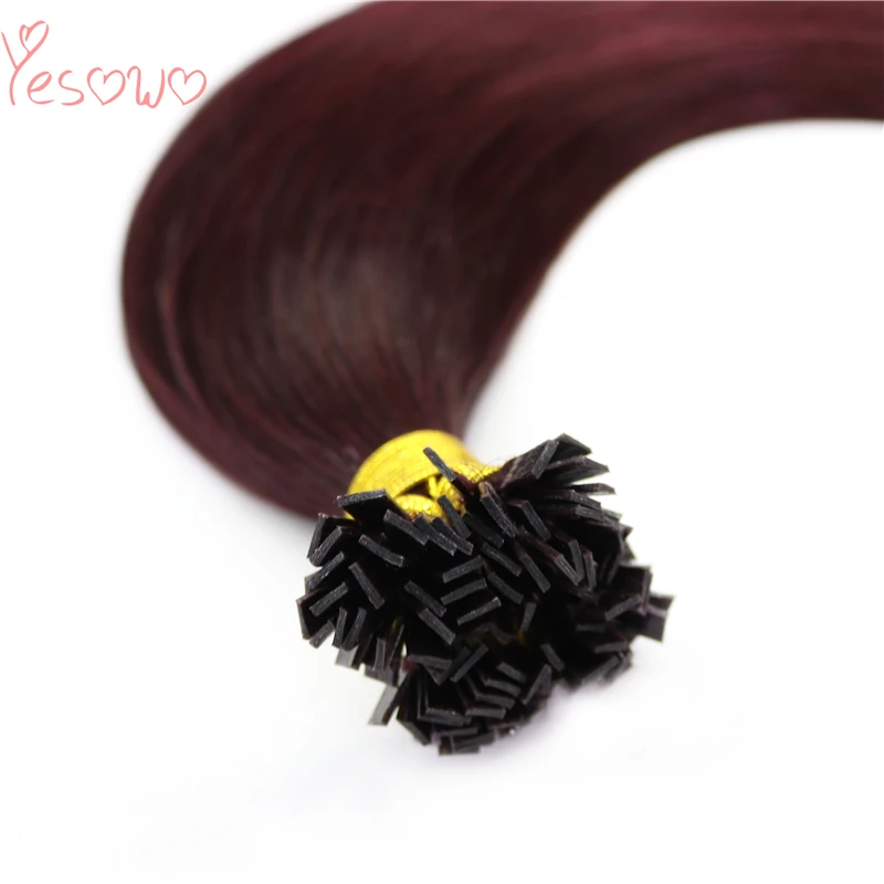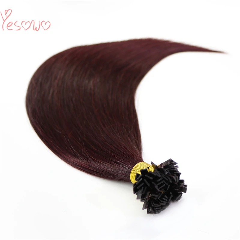 1. Название продукта: Yesowo 1 г/шт. модные винно-красные кератиновые предварительно связанные капсулы кератиновый сплав 100% индийские человеческие волосы с плоским кончиком remy для наращивания волос