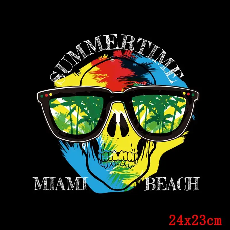 Nicediy крутой Железный На переноске на одежде Летние Красочные нашивки череп теплопередача виниловая наклейка аппликация на футболке значок