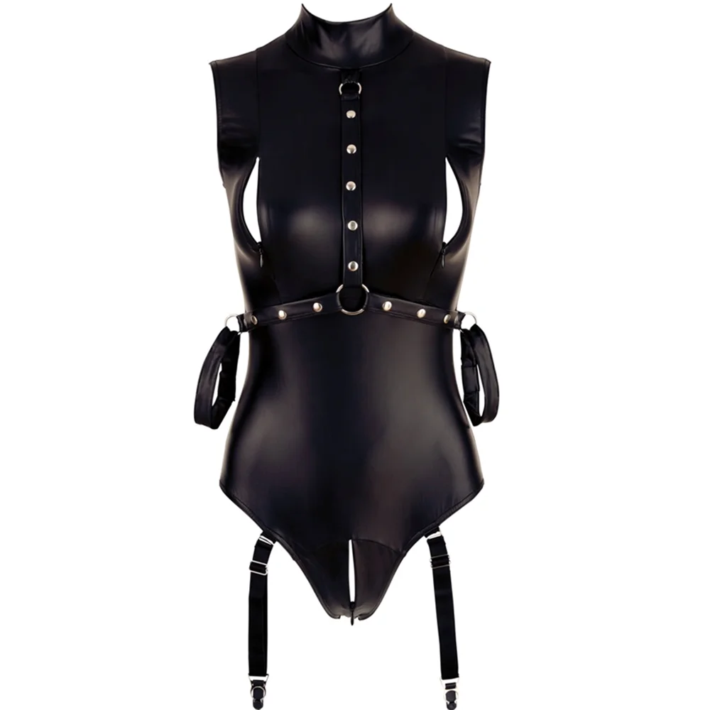 Женский комбидресс из латекса, боди на молнии с открытой грудью и открытой промежностью, с ремнями для рук и подвязок, сексуальный плюшевый боди размера XXL
