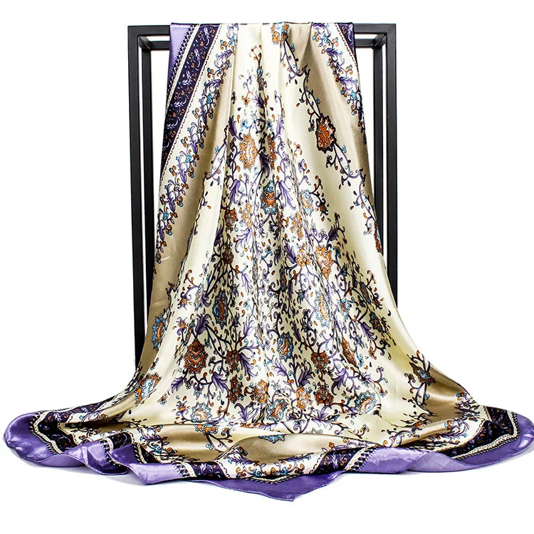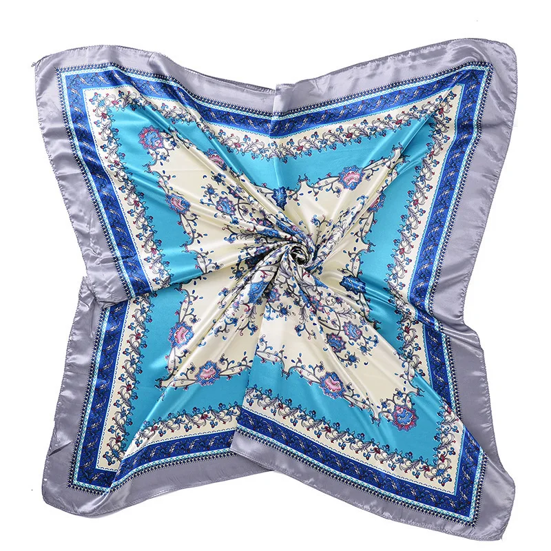 100% шелковый квадратный шарф женский синий и белый фарфоровый узор шелкопрядные шелковые женские шарфы шали 90*90
