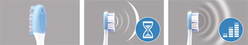 Щетинки, перемещаясь по горизонтали с амплитудой около 1 мм, позволяют щетке мягко очистить зубы вдоль линии дёсен.