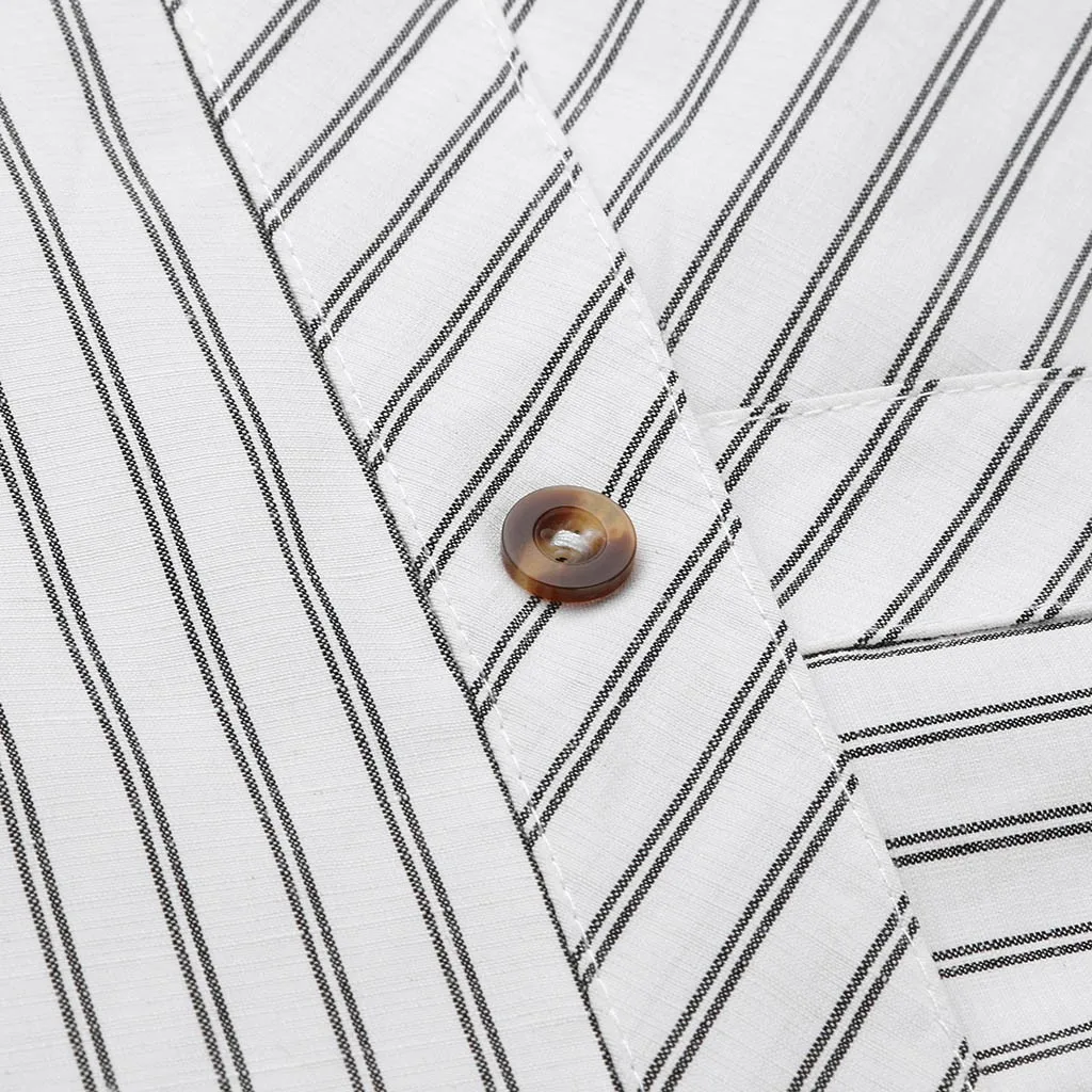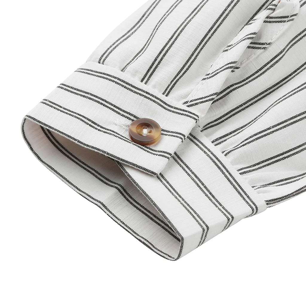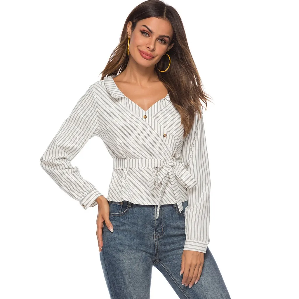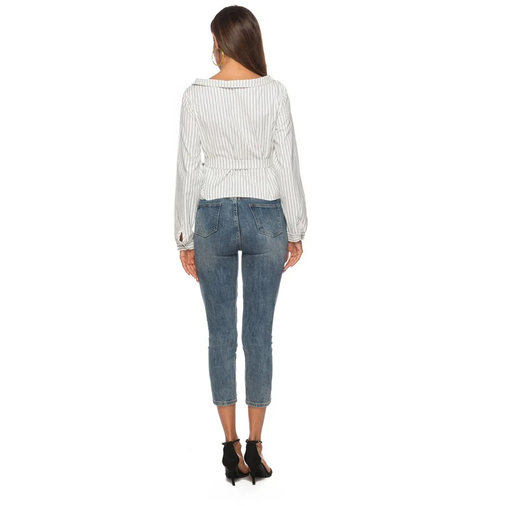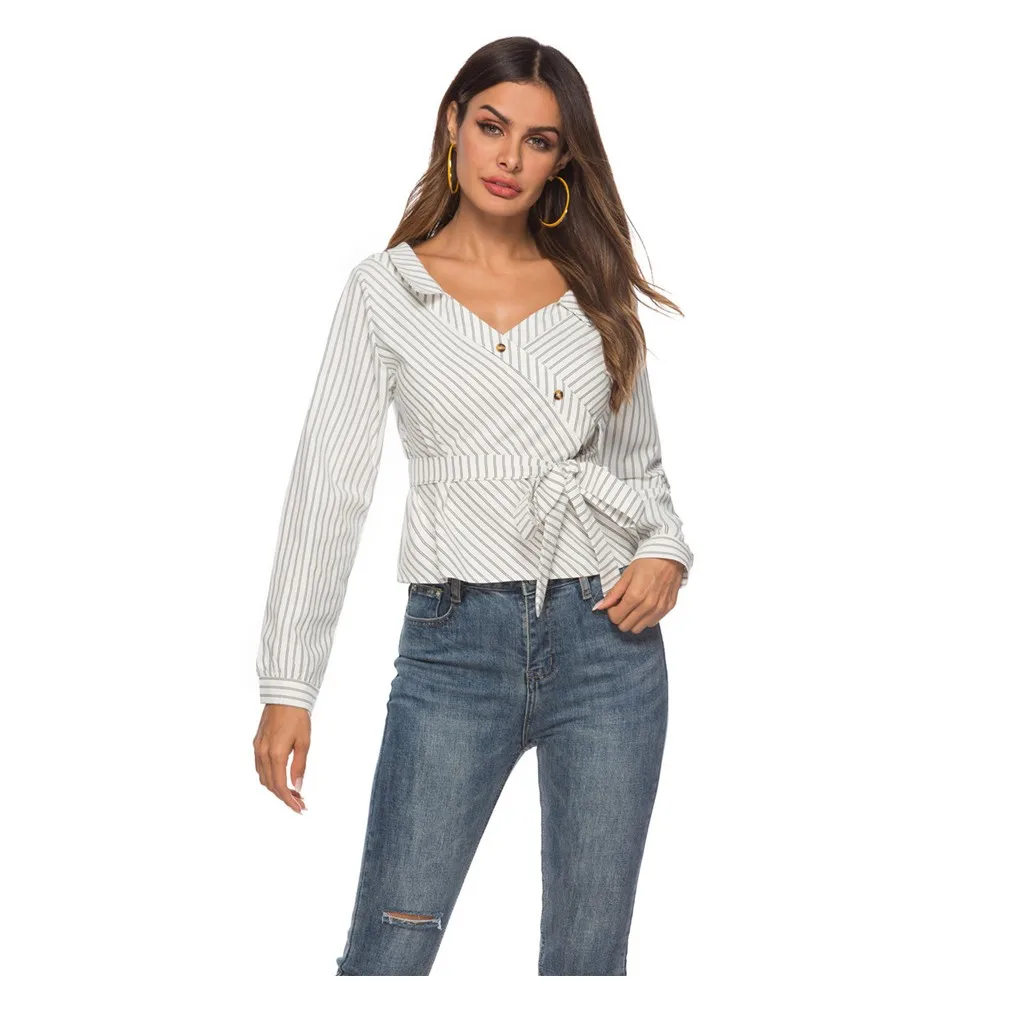 Женская Повседневная рубашка с длинным рукавом на пуговицах в полоску Кардиган Верхняя одежда Топ Блузка