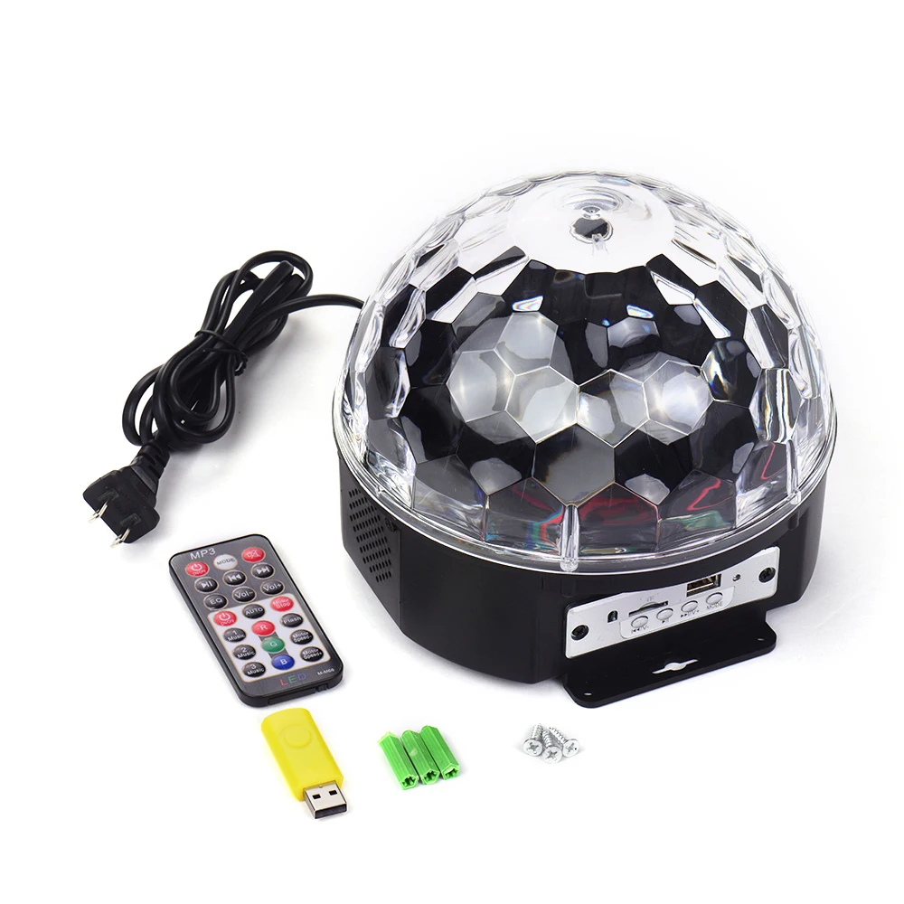 9 цветов шаросветильник: этот уникальный сценический свет для вечерние имеет 9 различных цветов (красный, синий, зеленый, желтый, фиолетовый и т. д.). Этот диско-шар BT с пультом дистанционного управления точно шокирует ваш глаз, с яркими огнями, чтобы вы чувствовали себя прохладным.