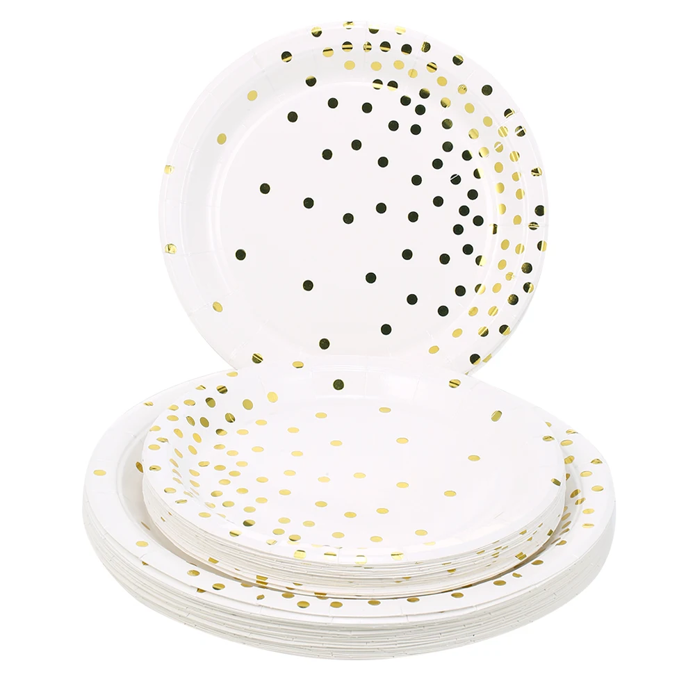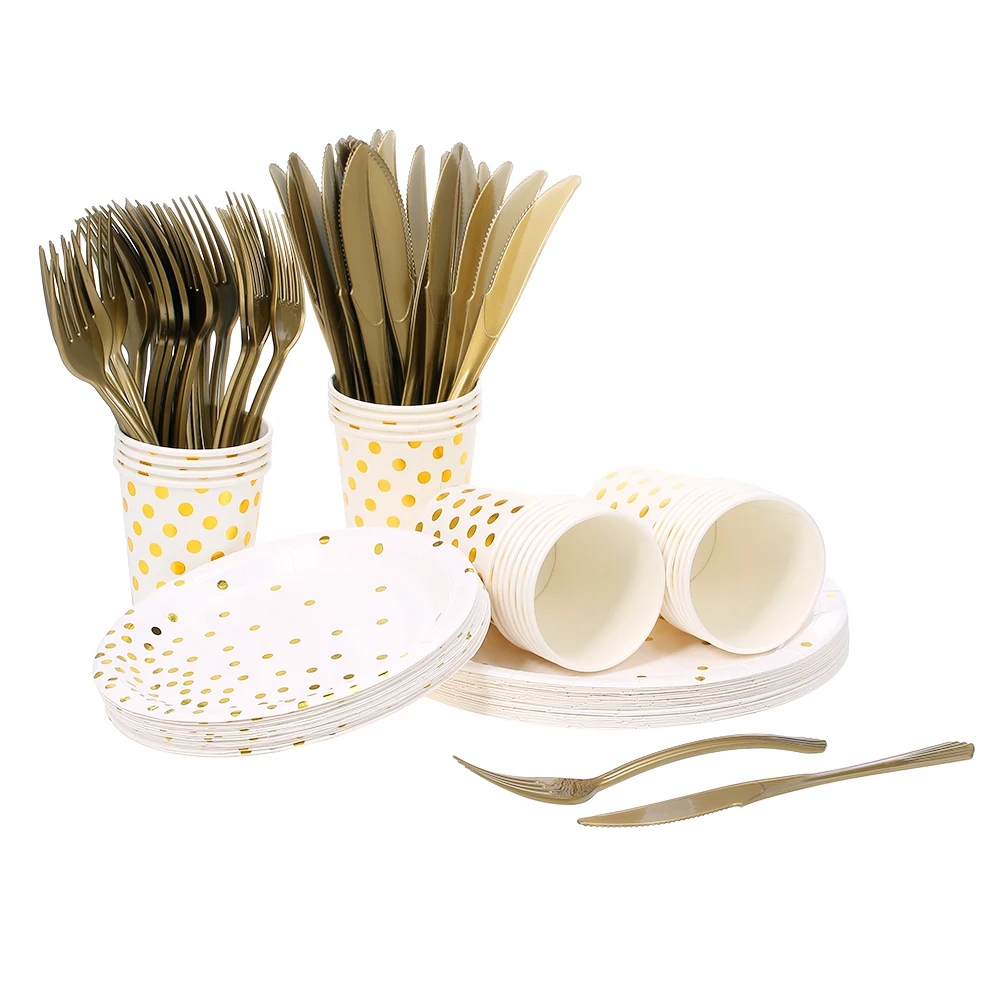 Он включает в себя все, что вам нужно для вечерние, все эти столовые приборы одноразовые и изготовлены из экологически чистой бумаги, не легко быть сломаны, будут экономить время и безопасно использовать.