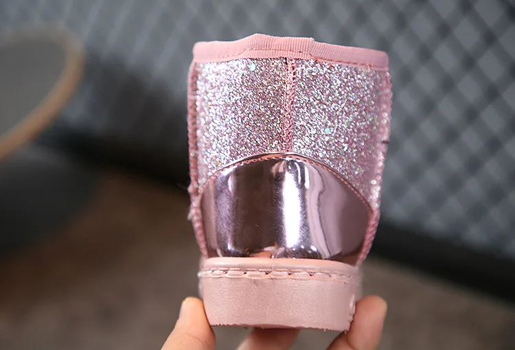 Зимние ботинки для девочек; Зимняя теплая обувь на плоской подошве с круглым носком; Детская обувь; Мягкие ботинки для маленьких детей; Цвет розовый, черный; Размеры