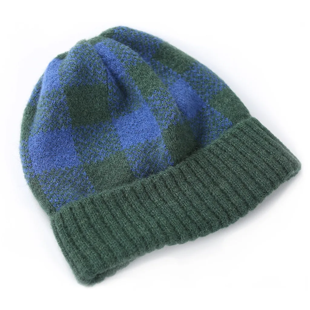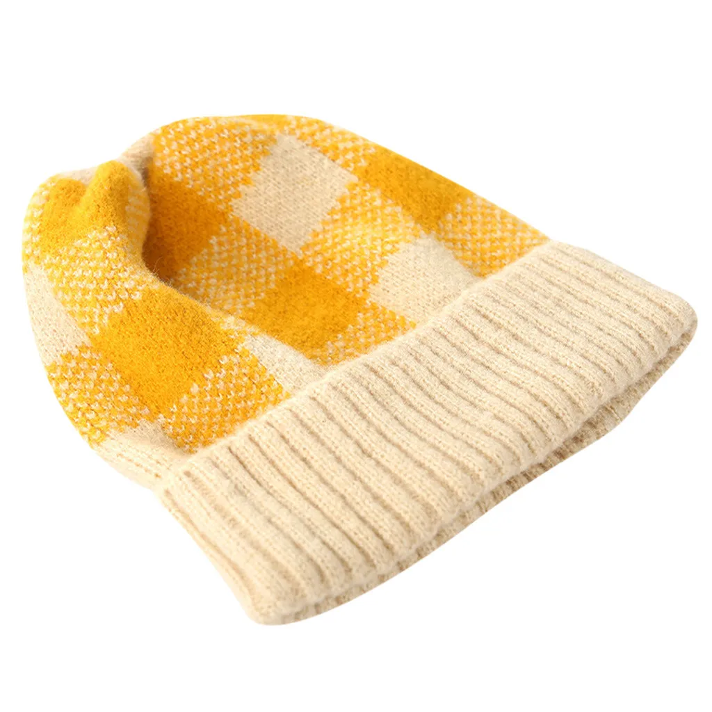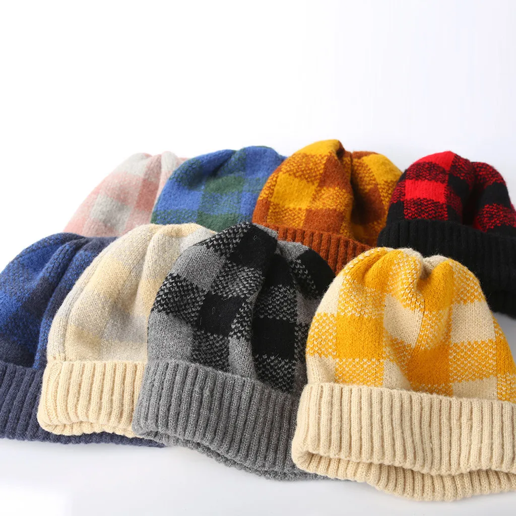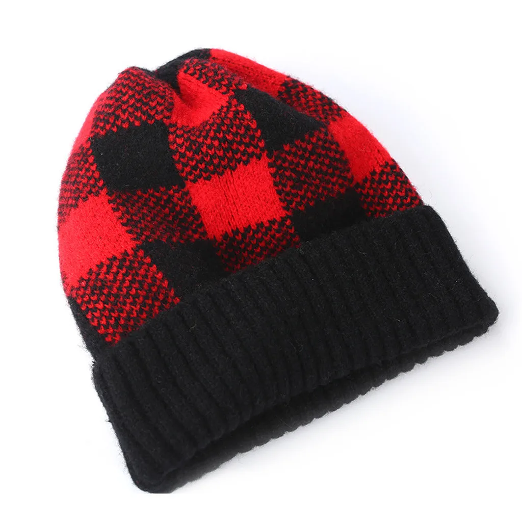 Модная женская зимняя теплая шапка с бархатным воротником, плотная клетчатая вязаная шапка для родителей и детей