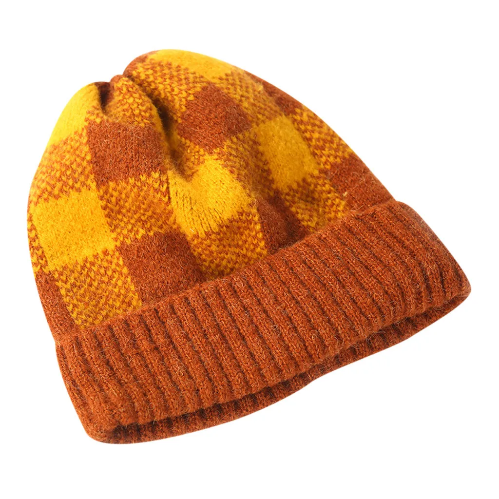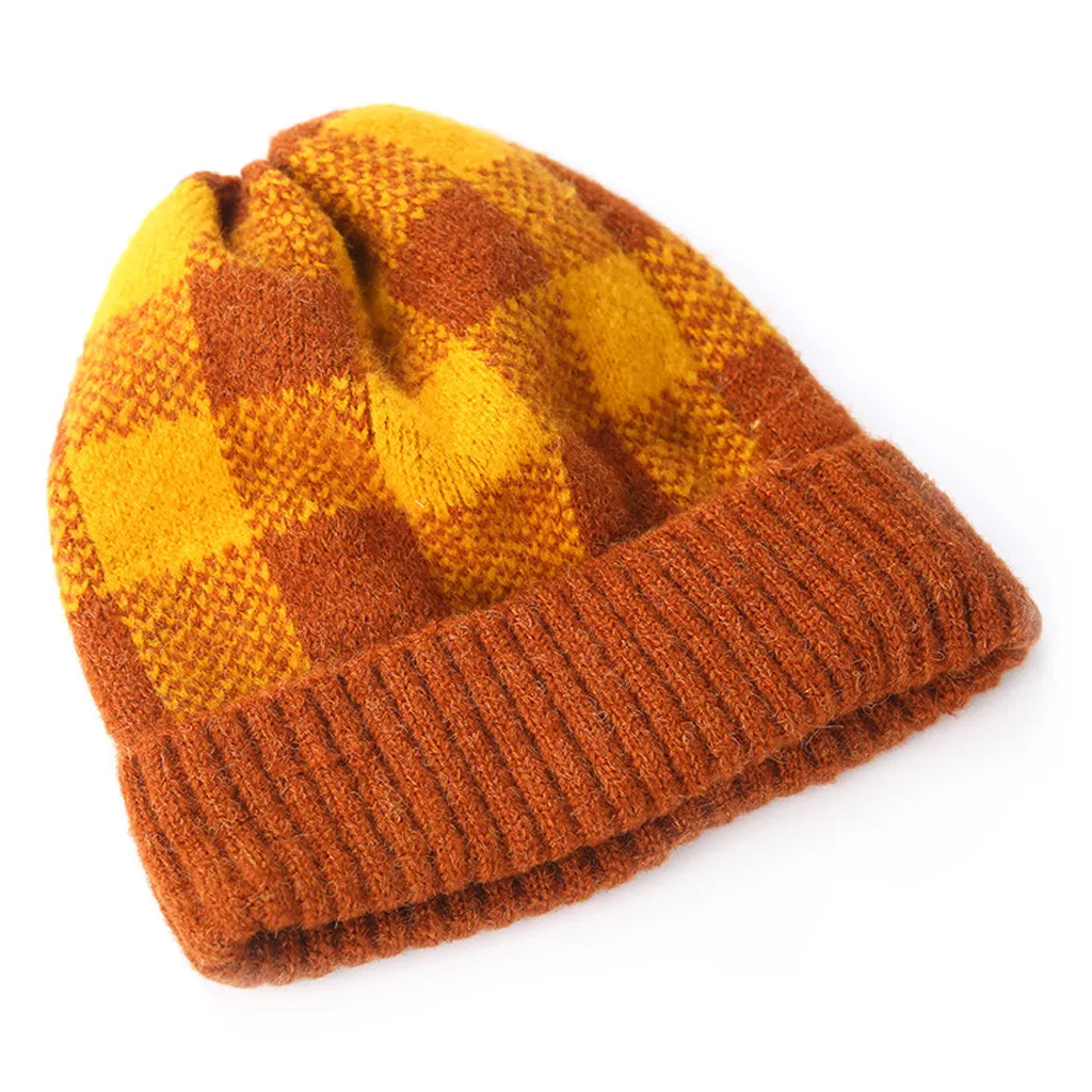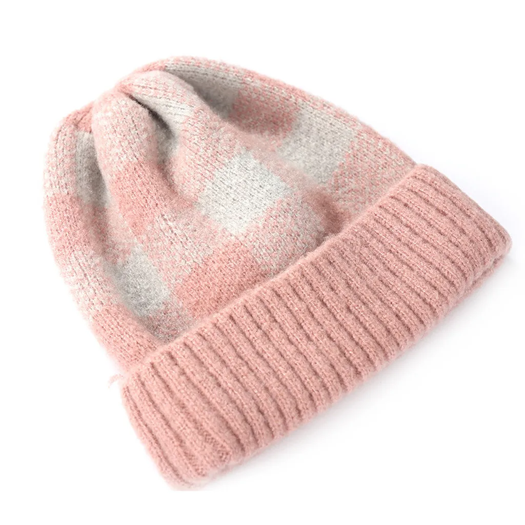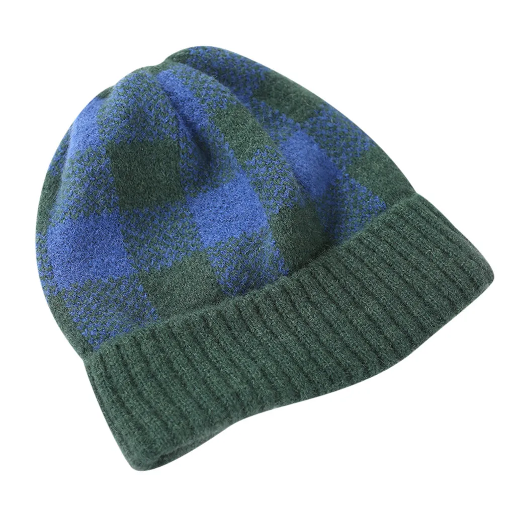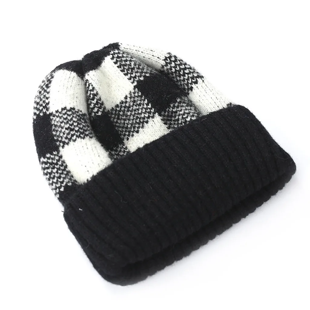 Модная женская зимняя теплая шапка с бархатным воротником, плотная клетчатая вязаная шапка для родителей и детей