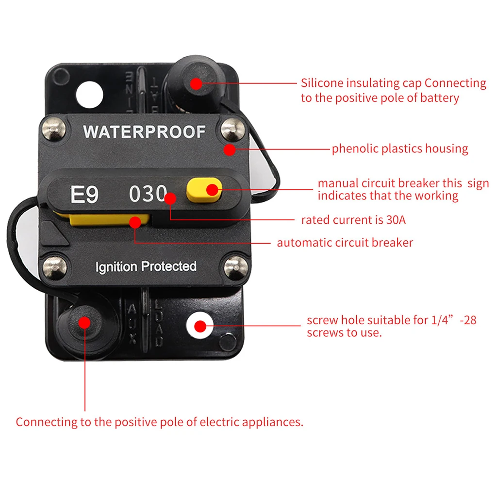 Вы можете использовать этот автомобильный Водонепроницаемый Автоматический выключатель для защиты электрического устройства от перегрузки по току, продлевая срок службы устройства.