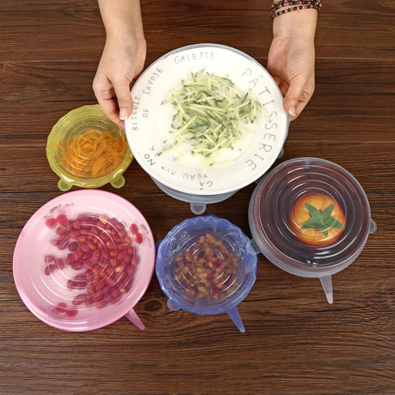 6 шт./компл. силиконовые эластичные крышки Универсальная крышка Силиконовая пищевая оберточная чаша крышка кастрюля силиконовая крышка сковорода кулинарные кухонные принадлежности