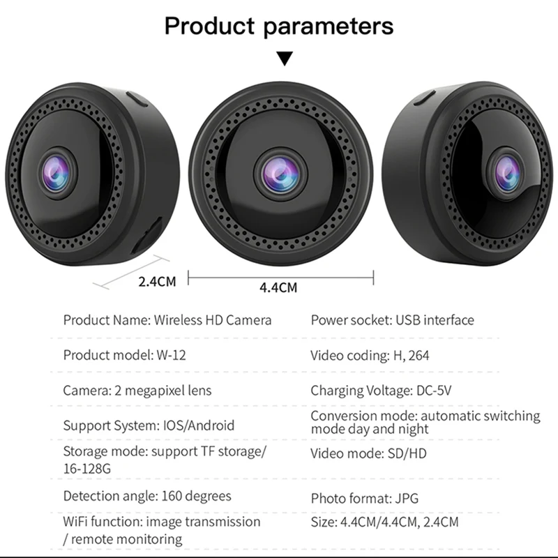 2. Небольшой размер 3,9*3,9*2,4 см, мини-камера с портативным дизайном, монитор, не привлекая внимания