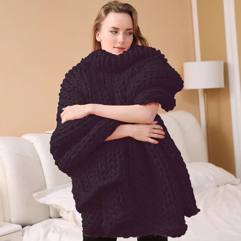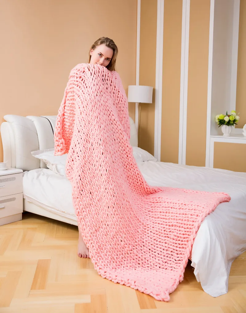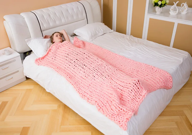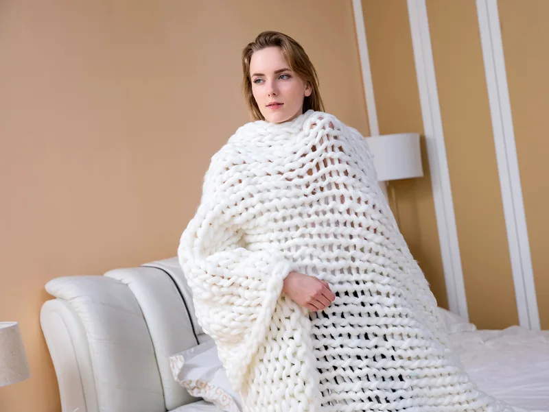 Ручное массивное шерстяное вязаное одеяло из толстой шерсти объемное вязаное одеяло s скандинавский домашний текстиль