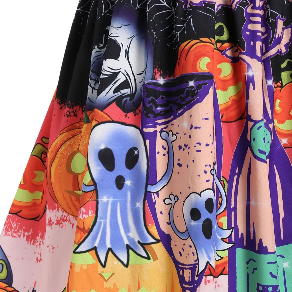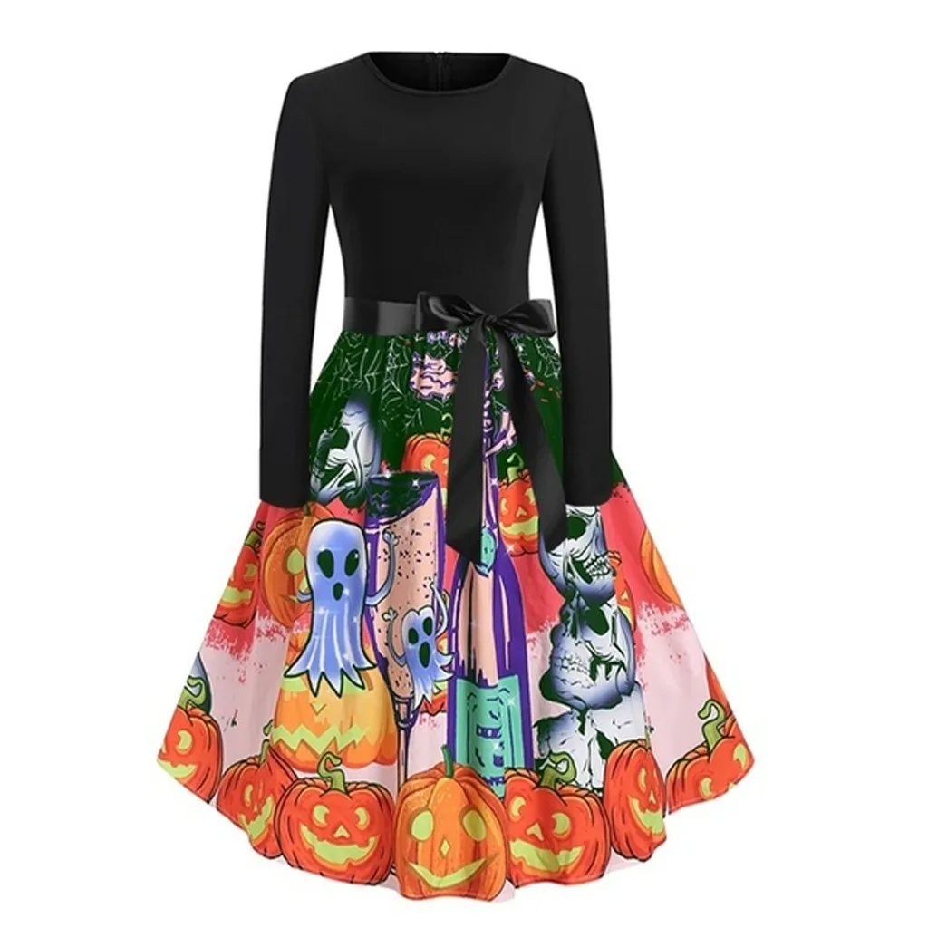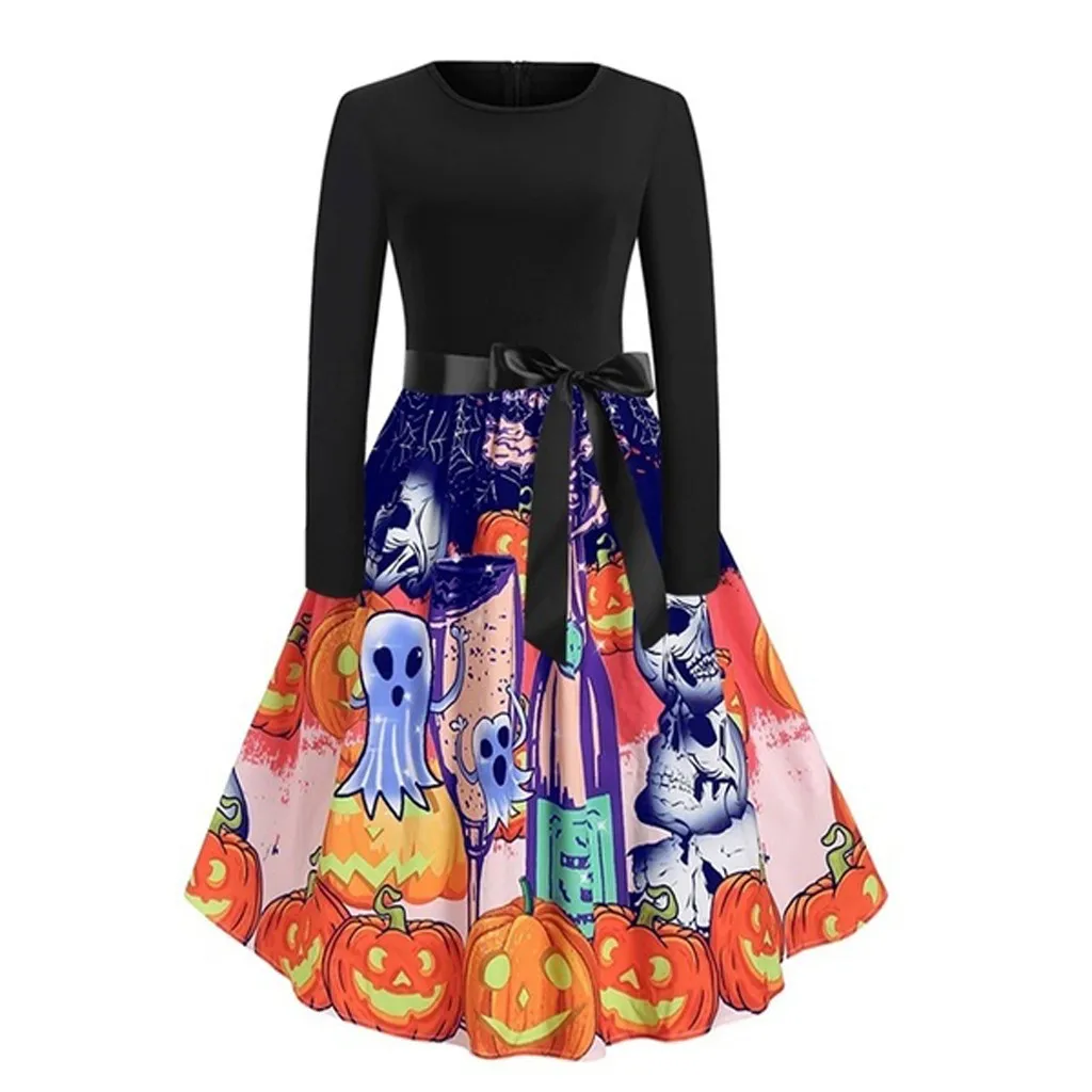 Женское винтажное платье с длинным рукавом и принтом тыквы на Хэллоуин
