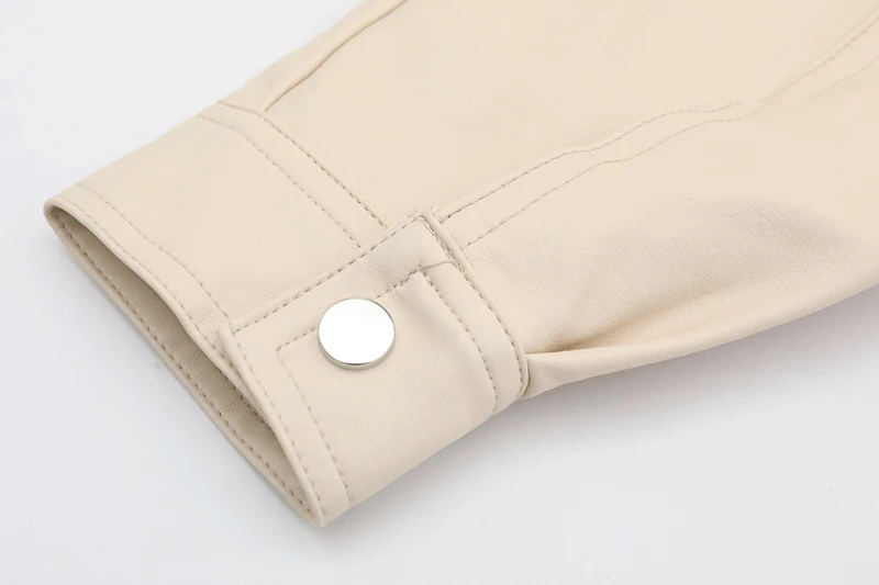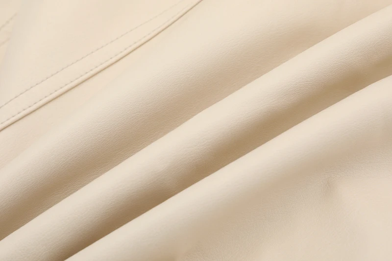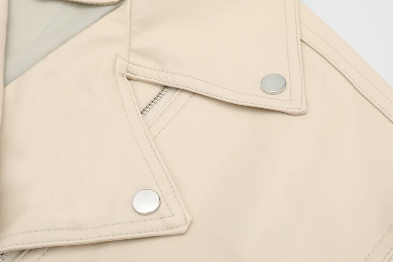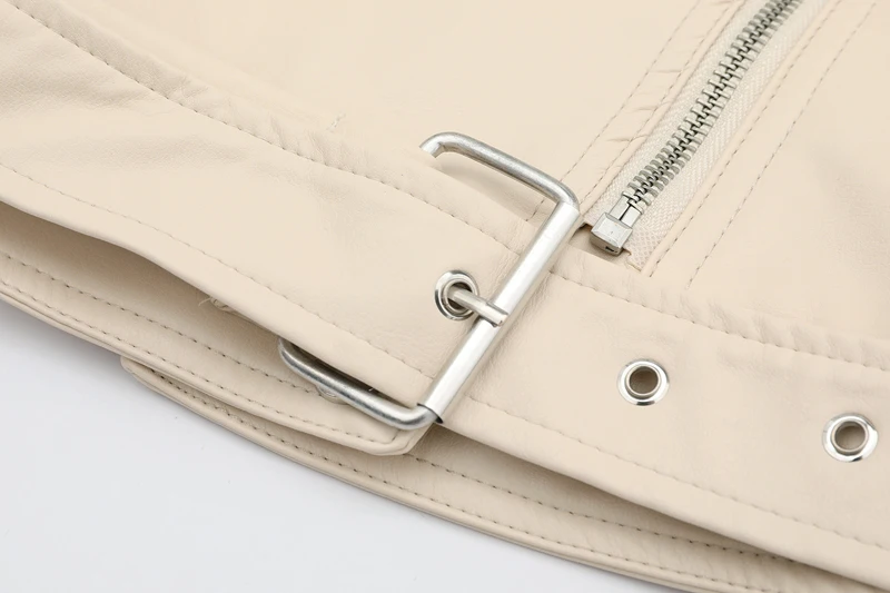 Женская мотоциклетная куртка, бежевая куртка из искусственной кожи с лацканами и поясом на молнии, повседневная куртка в стиле бойфренд из искусственной кожи, осенняя куртка