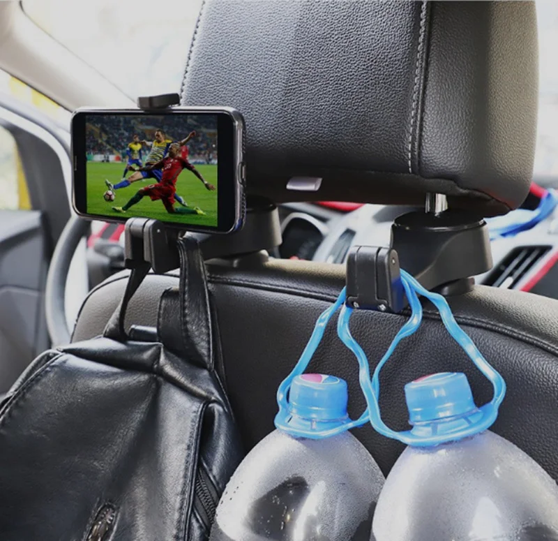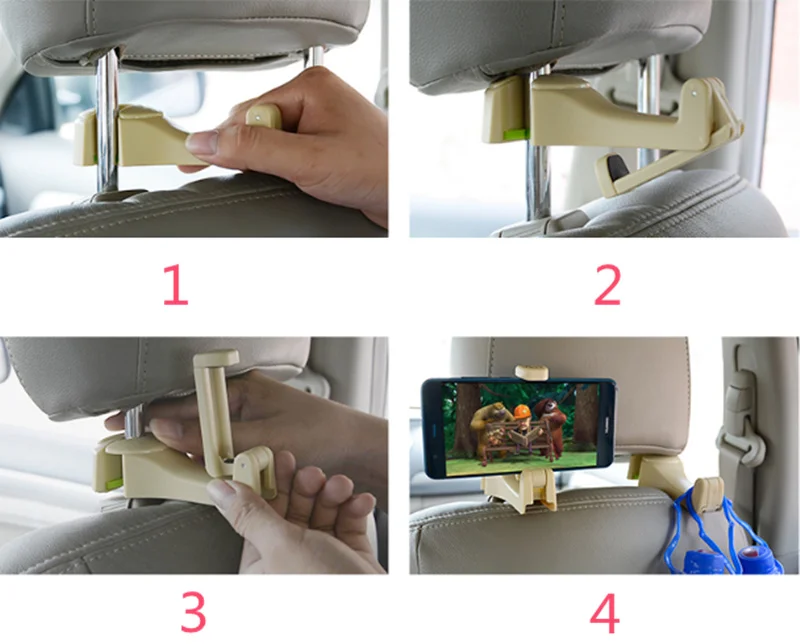 Specification: Material: ABS+silicone Color: black / beige Size: 12.2x5.3x2.7cm 2 in 1 headrest hook & phone holder This car headrest hook is built-in a folding phone holder, which allows you to organize you stuff and play phone at the same time Easy to install No need to disassemble the headrest, no tools, no adhesive, rotatable and can be hidden when you not use it. Easily use with hidden design The hook can be rotated and put away when not in use. Swing hook around to either the front or back of the seat to use as desired. Premium quality Made of High quality ABS and scratch-resistant silicon rubber, durable and environmental. Save your space Converts your car's headrest into a convenient storage space to hang groceries, clothes, umbrella, handbags, water bottles, etc. Universal use The 2 in 1 car seat hook phone holder is compatible with most 4.0-6.0 inch cell phone and can be use on most cars, trucks, SUVs and more. Package include: 1pc x Car seat back hook