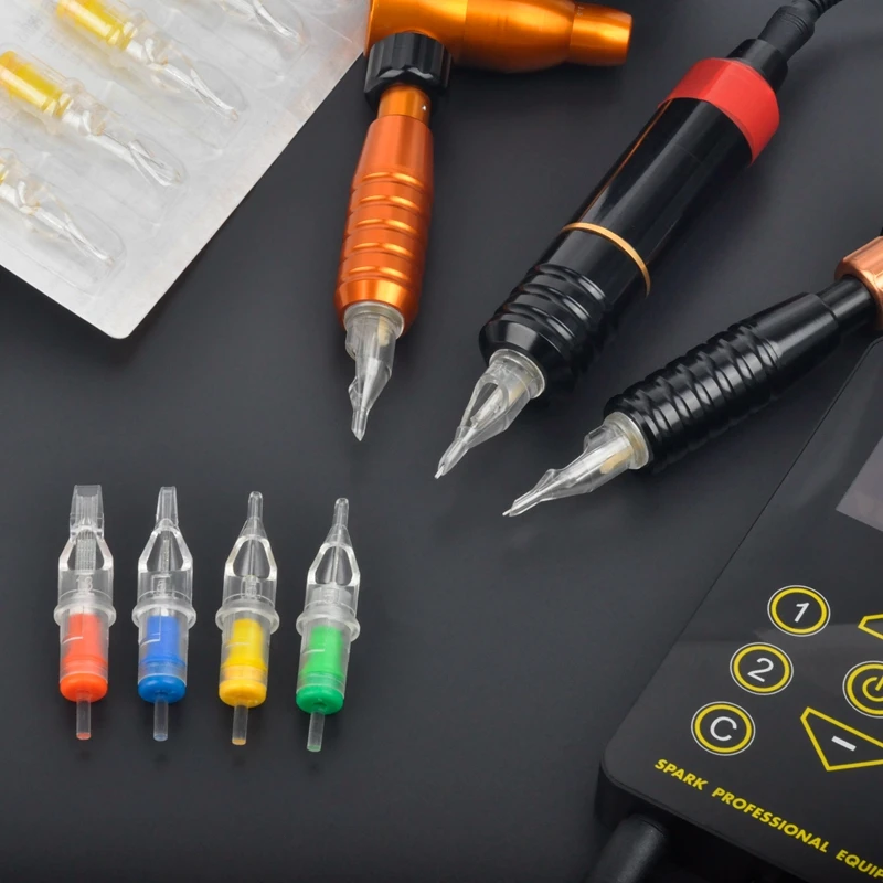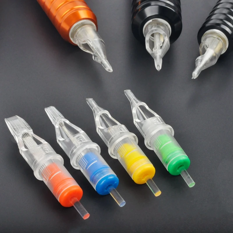 Особенности: -100% E.O газ стерилизован и индивидуально упакован -Гладкие края устраняют дополнительную травму -Иглы изготовлены из 316 медицинской нержавеющей стали. Медицинские пластиковые наконечники -Защитная мембрана внутри системы -Световая скоба, улучшенная видимость -Точная посадка для игольчатых групп и гладких краев устраняет дополнительную травму Технические характеристики: -Тип изделия: игла картриджа для татуировки -Материал: полупрозрачный износостойкий ПВХ и медицинская сталь