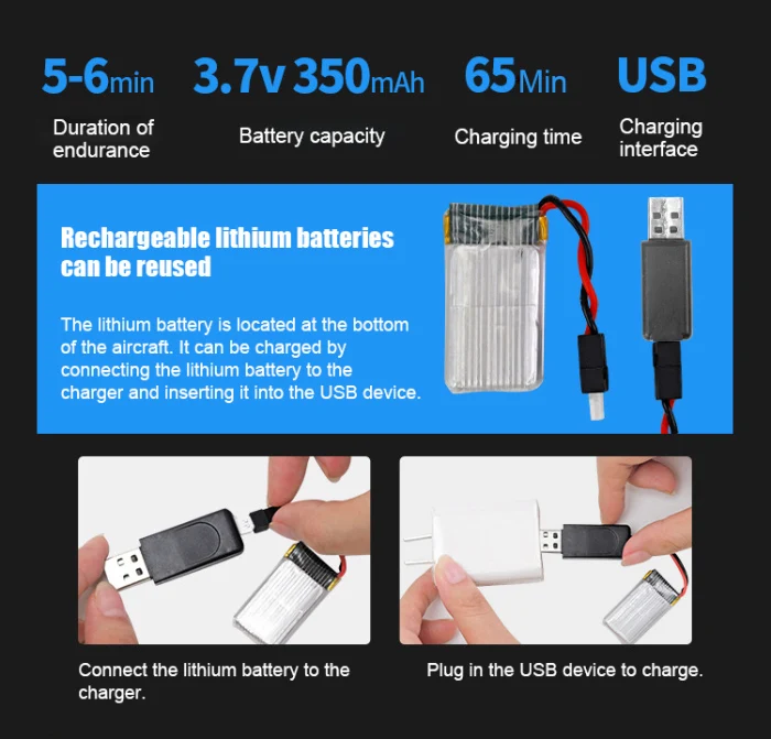 Аккумулятор большой емкости 3,7 в 350 мАч, Легко Подключаемый аккумулятор, более длительный срок службы батареи до 6 минут, простая установка.