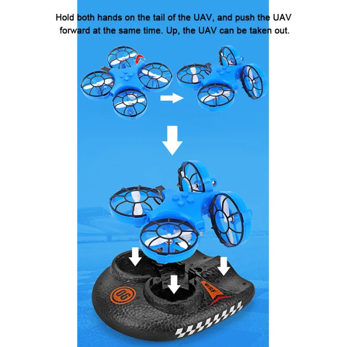 3-в-1 режим полета, простота в эксплуатации, любые комбинации летательных аппаратов и пены корпуса, для того чтобы достигнуть разнообразие играть в море, по суше и по воздуху, переключение режимов проста в использовании, не ограничиваясь окружающей среды.