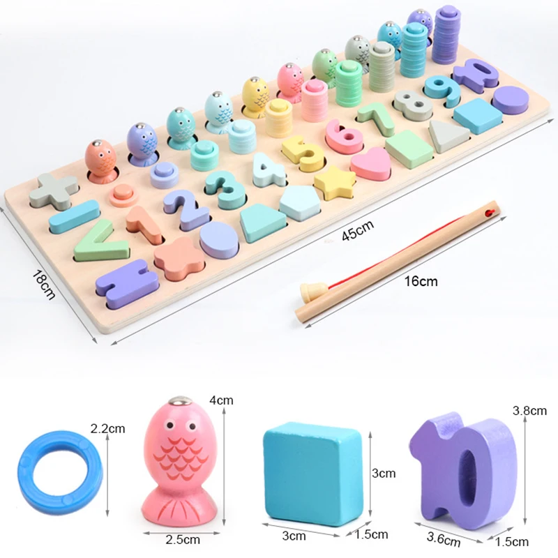 Детские деревянные материалы Монтессори учатся считать рыбалку/количество, соответствующие раннему образованию, Обучающие Математические Игрушки, логарифмическая доска