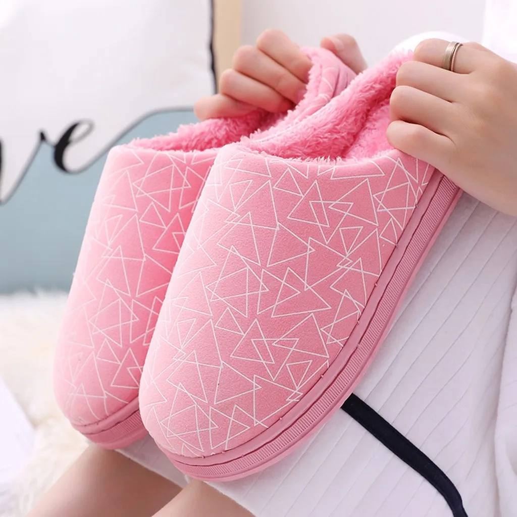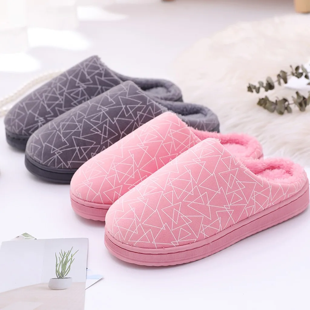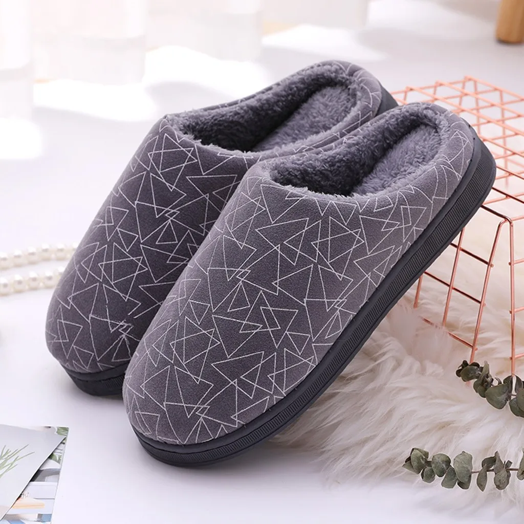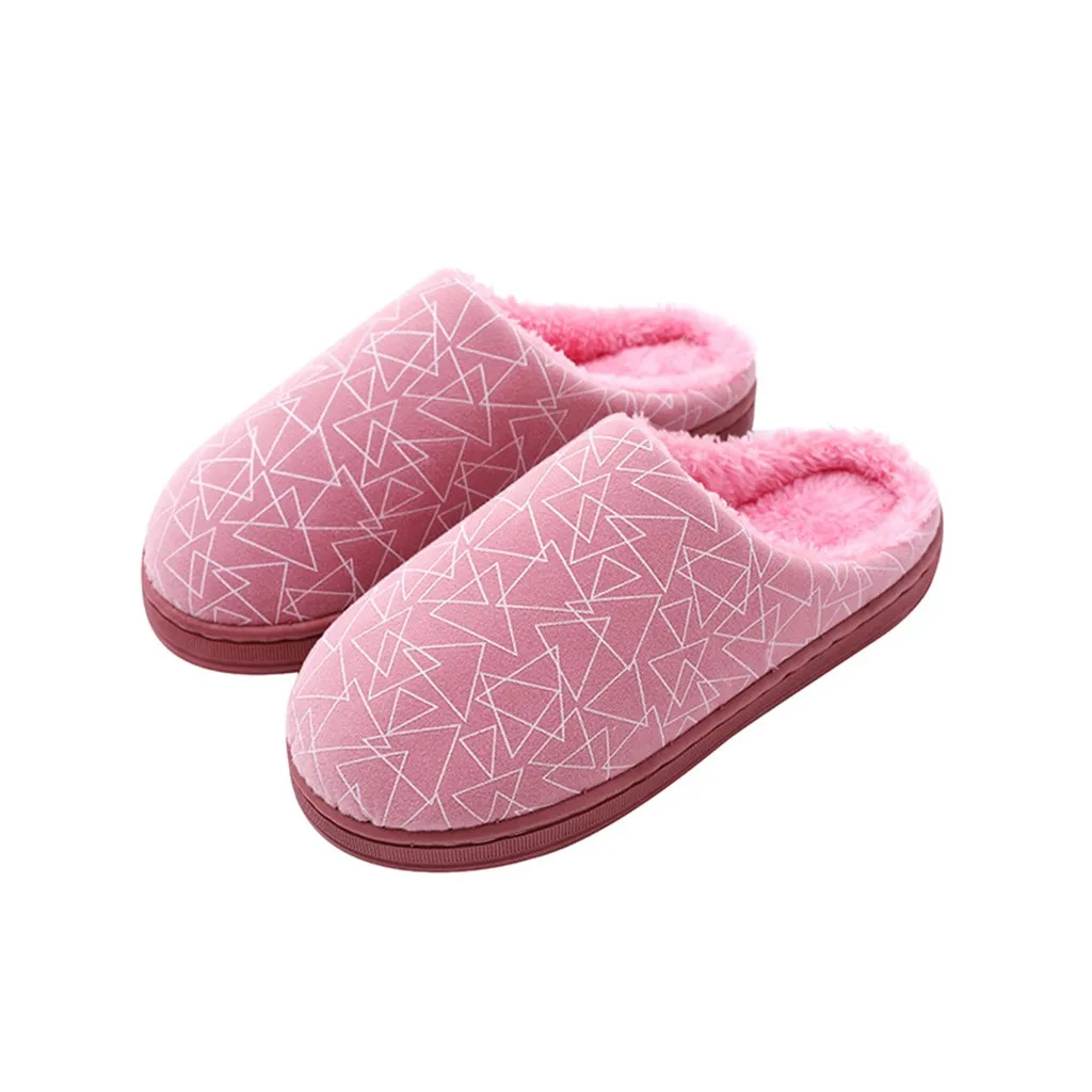 Женские и мужские парные теплые Нескользящие домашние тапочки из флока с геометрическим рисунком домашняя обувь