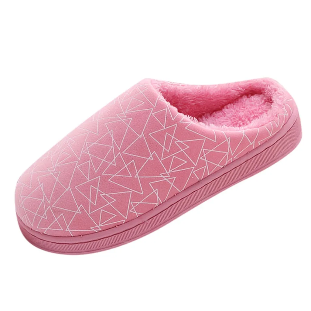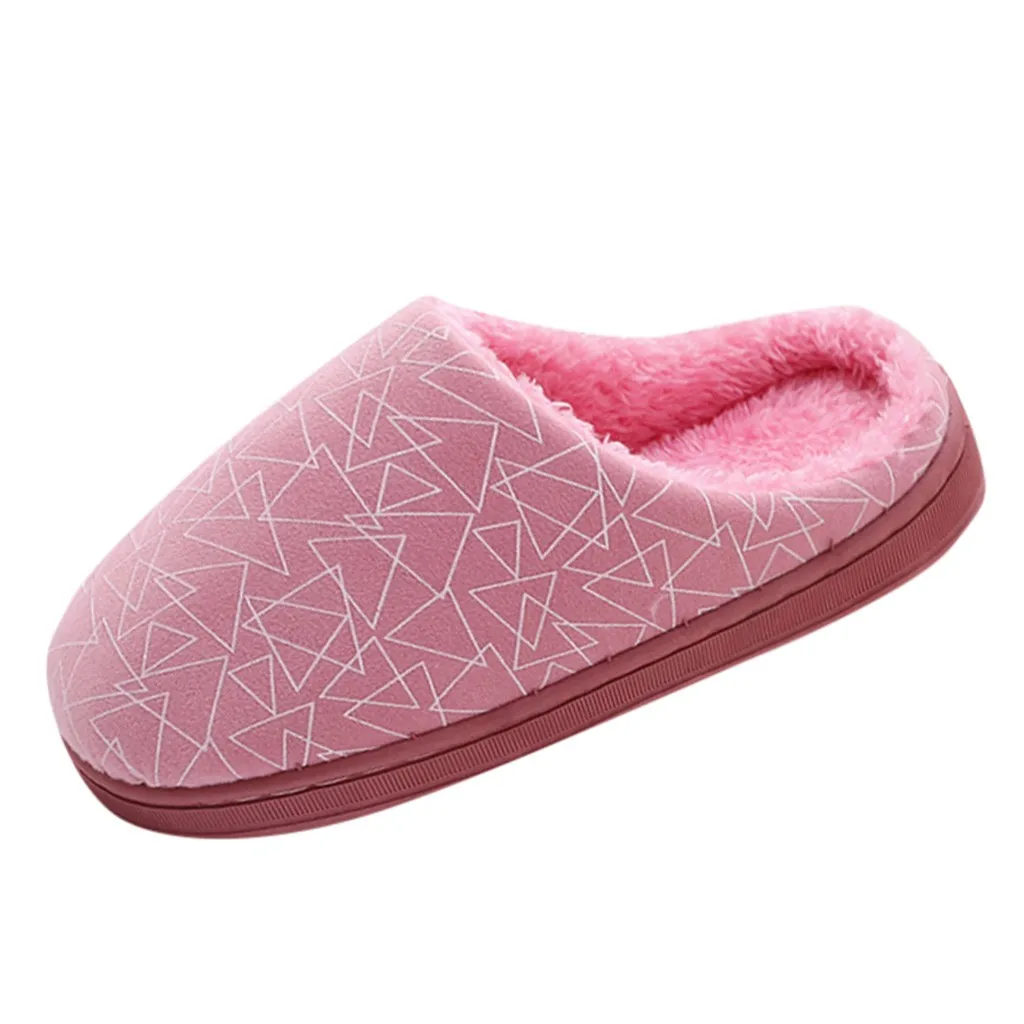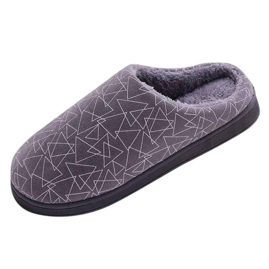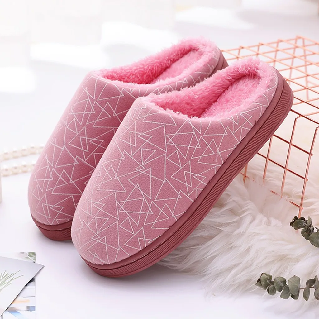 Женские и мужские парные теплые Нескользящие домашние тапочки из флока с геометрическим рисунком домашняя обувь