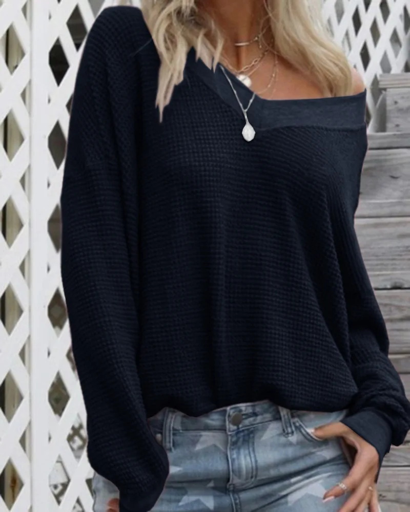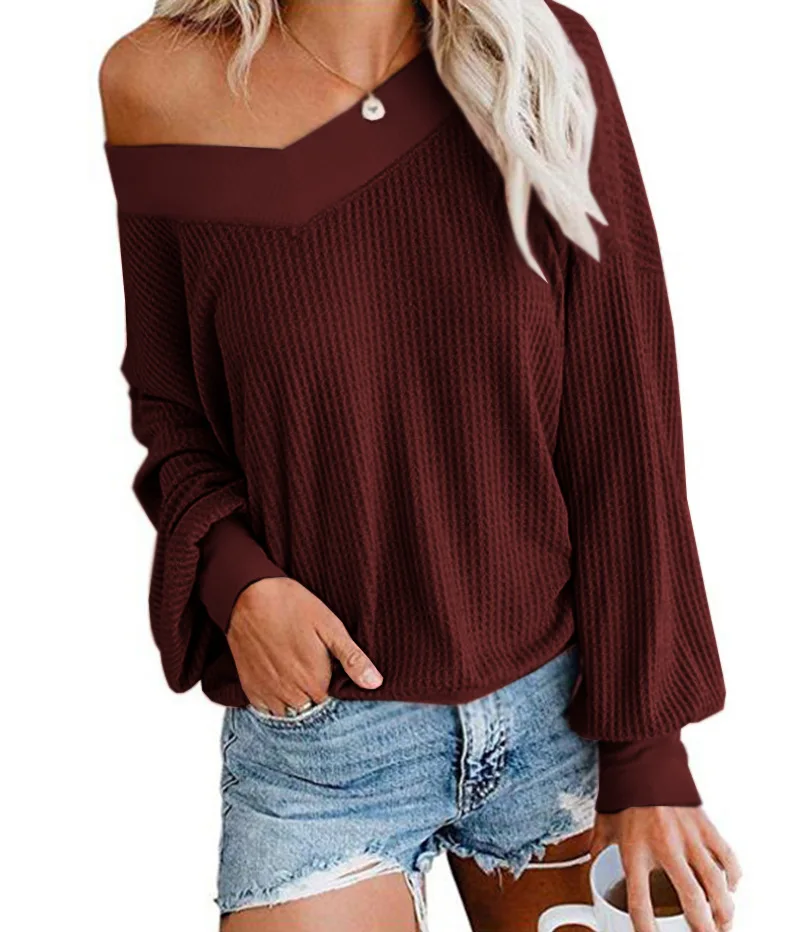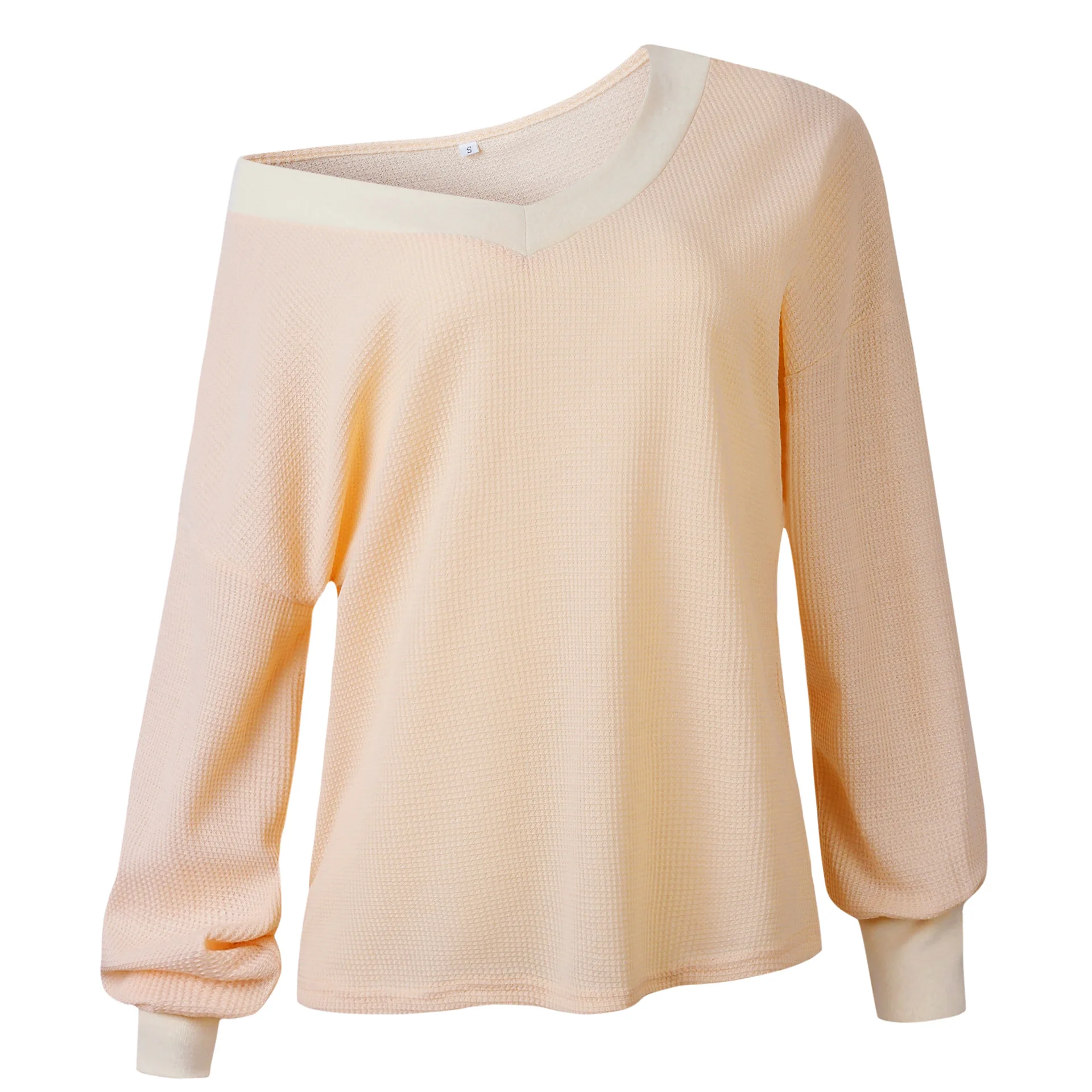 Зимняя одежда женская повседневная трикотажная Милая однотонная пуловеры с V-образным вырезом и открытыми плечами женская зимняя одежда Sueter Mujer