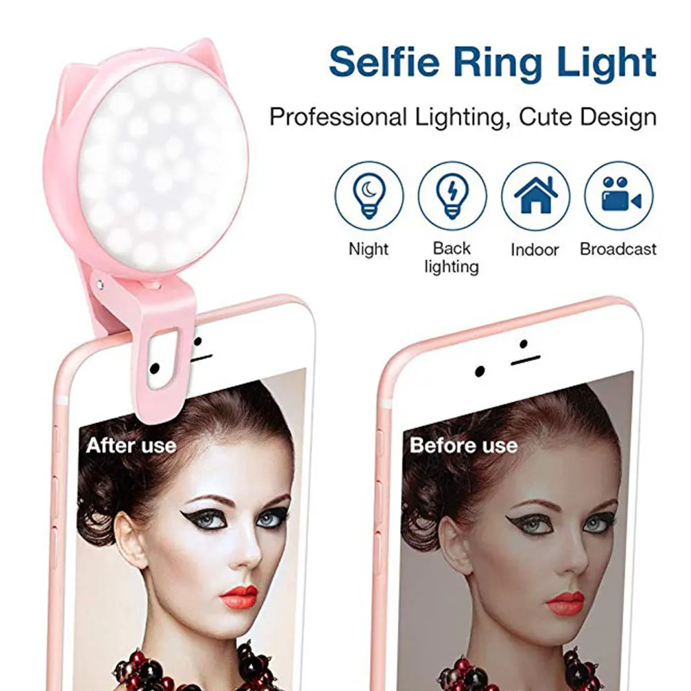 -Этот клип на камеру телефона селфи кольцевой светильник включает в себя встроенный аккумулятор с 2 до 8 рабочих часов после полной зарядки. Просто подключите usb-интерфейс устройства или вы можете подключить к обычной розетке через адаптер мобильного телефона. Таким образом, его можно использовать в любом месте и в любое время по вашему желанию.