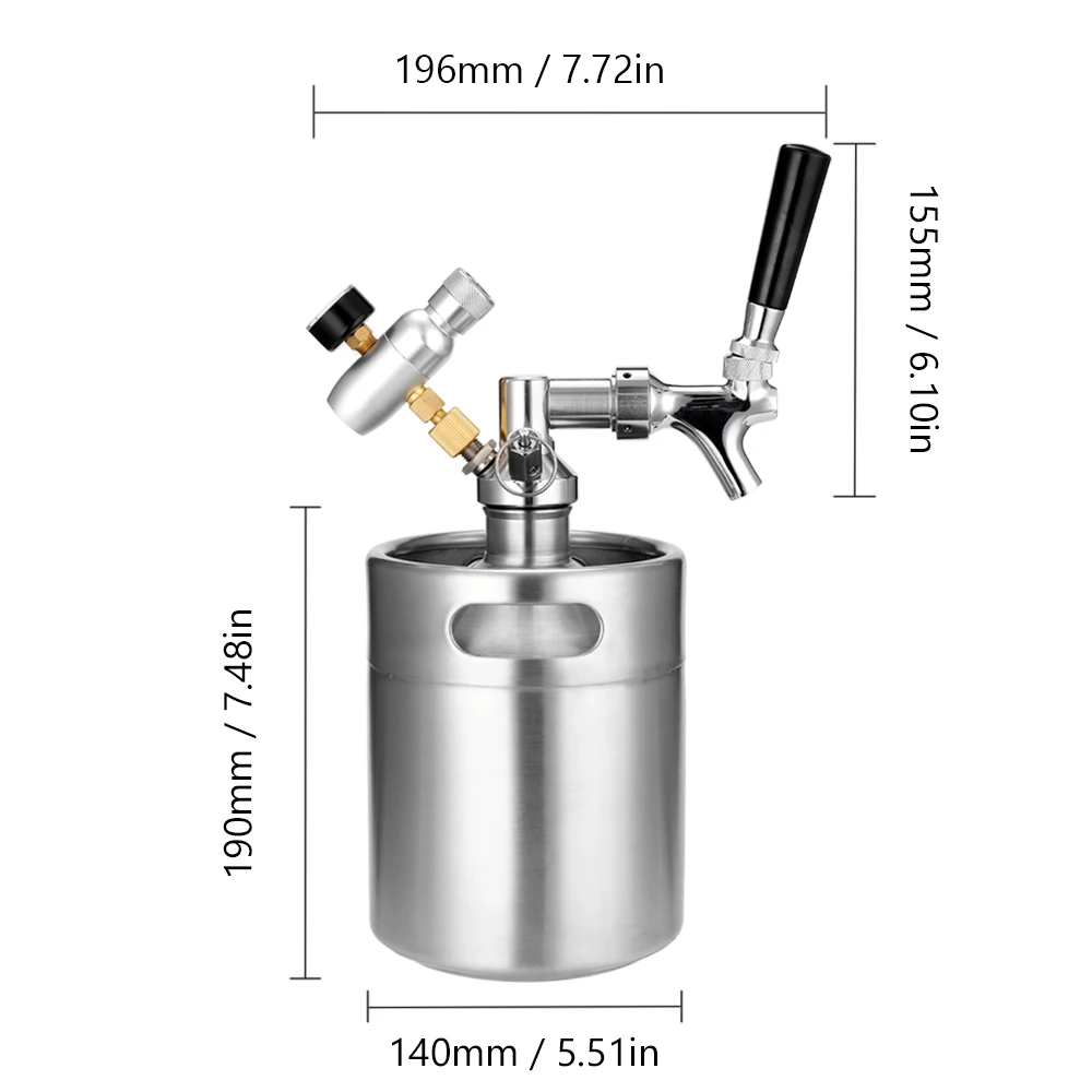 Keg size: 140 * 140 * 190mm / 5.51 * 5.51 * 7.48in
