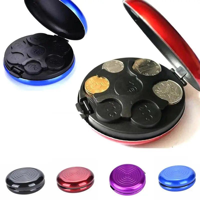 Различные цвета, коробка для монет, Диспенсер, монеты, кошелек, держатель, коробка для хранения, алюминиевый сплав + пластиковый органайзер, коробки для денег