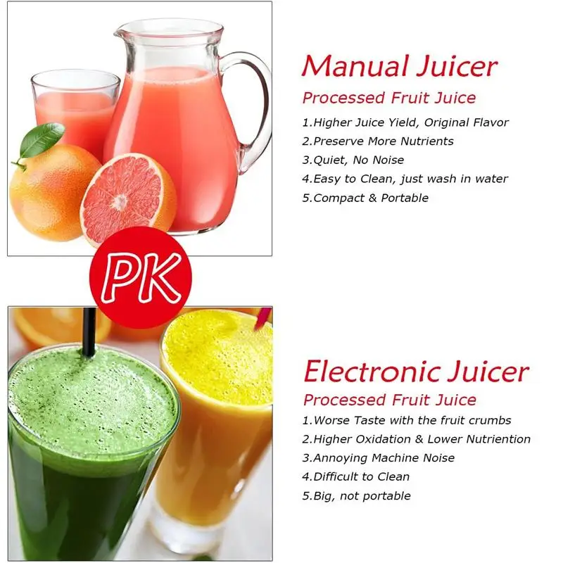 4. Эта ручная Апельсиновая соковыжималка может лучше зафиксировать фрукты и надежно закрепить его в винтовой крышке, когда вы нажимаете вниз и поворачиваете фрукты, чтобы получить сок. Шесть лезвий с фиксированным отверстием, более глубокое фиксированное тело.