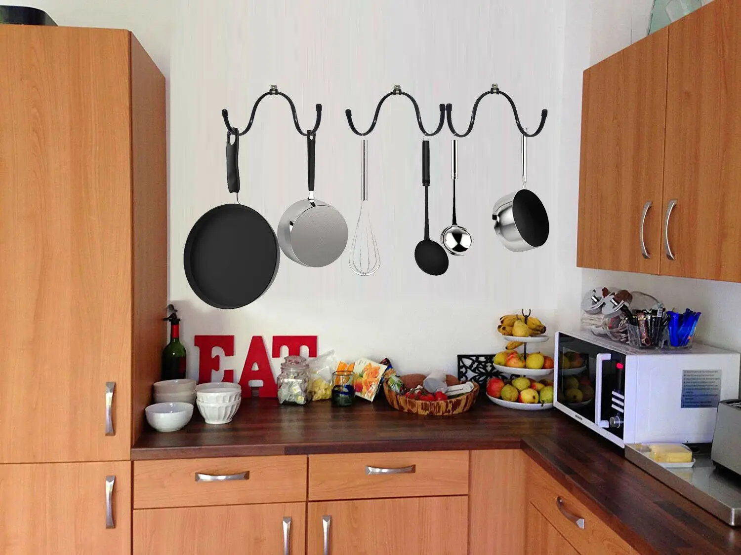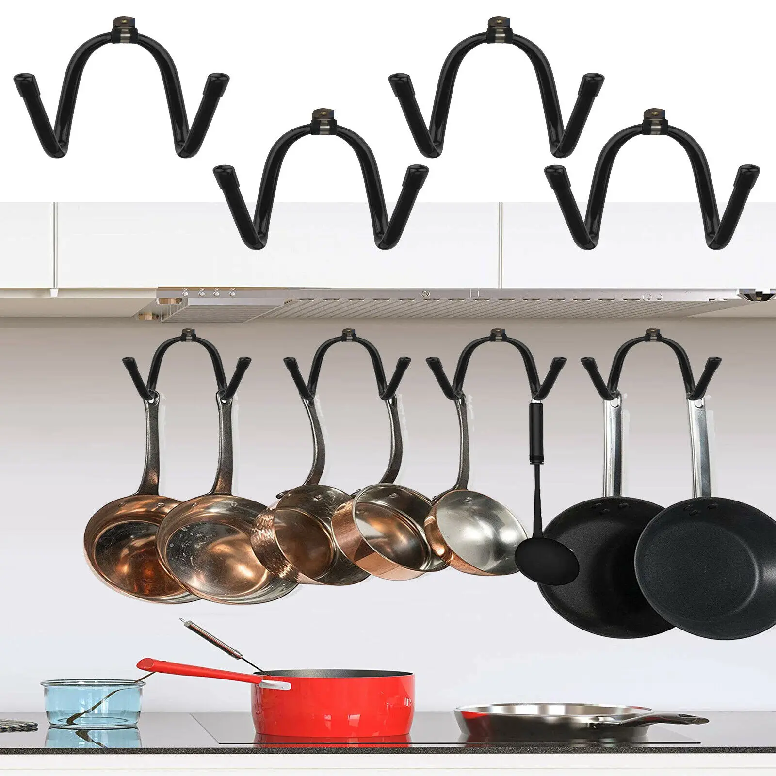 100% абсолютно новый и качественный. Количество: 4 стойки. Держите 8 кастрюль. Без Скалки, кастрюли, вина. (включая монтажное оборудование) Подвесная посуда для экономии места. -Хороший помощник в семье и в жизни, эта стойка подходит для подвешивания большинства предметов до 20 фунтов в жизни. Никаких царапин. Не ржавеет-изготовлен из качественного металла с резиновой защитой. Стойка обернута резиной, поэтому, пожалуйста, не беспокойтесь о царапинах. Предотвращение ржавчины Универсальный-Стойка регулируется, чтобы соответствовать вашим разным размерам, пожалуйста, согните его в соответствии с вашими потребностями. Может использоваться в кухне, ванной, гостиной и т. д. для хранения любых предметов. Классический дизайн сочетается с любым стилем украшения
