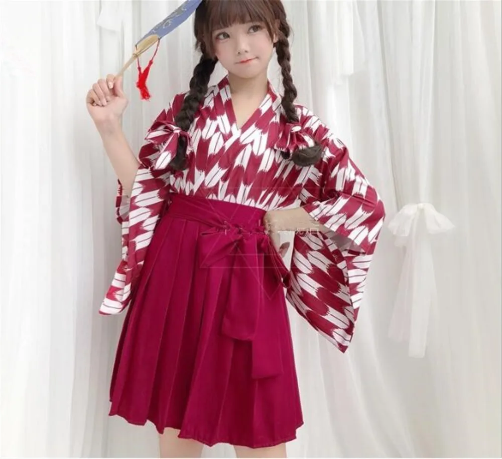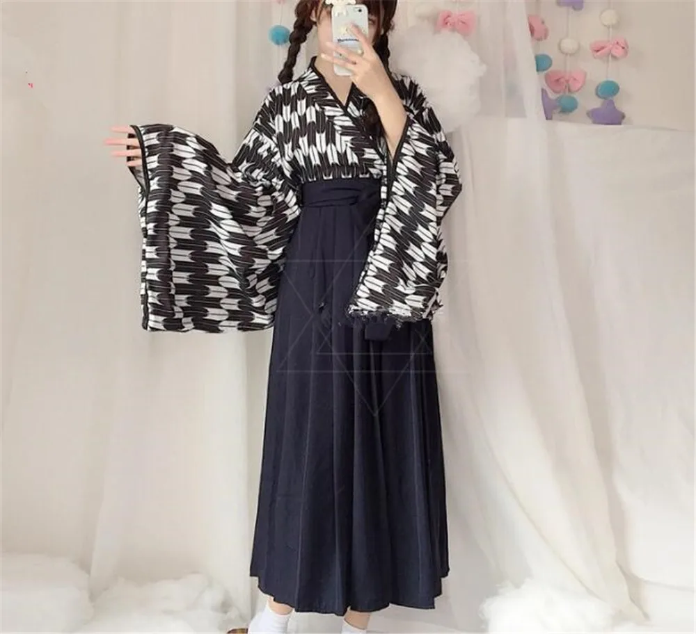 Для девочек в японском Стиль ретро-кимоно с цветочным принтом с длинным рукавом, женские вечерние платья модное летнее платье с топом, B372