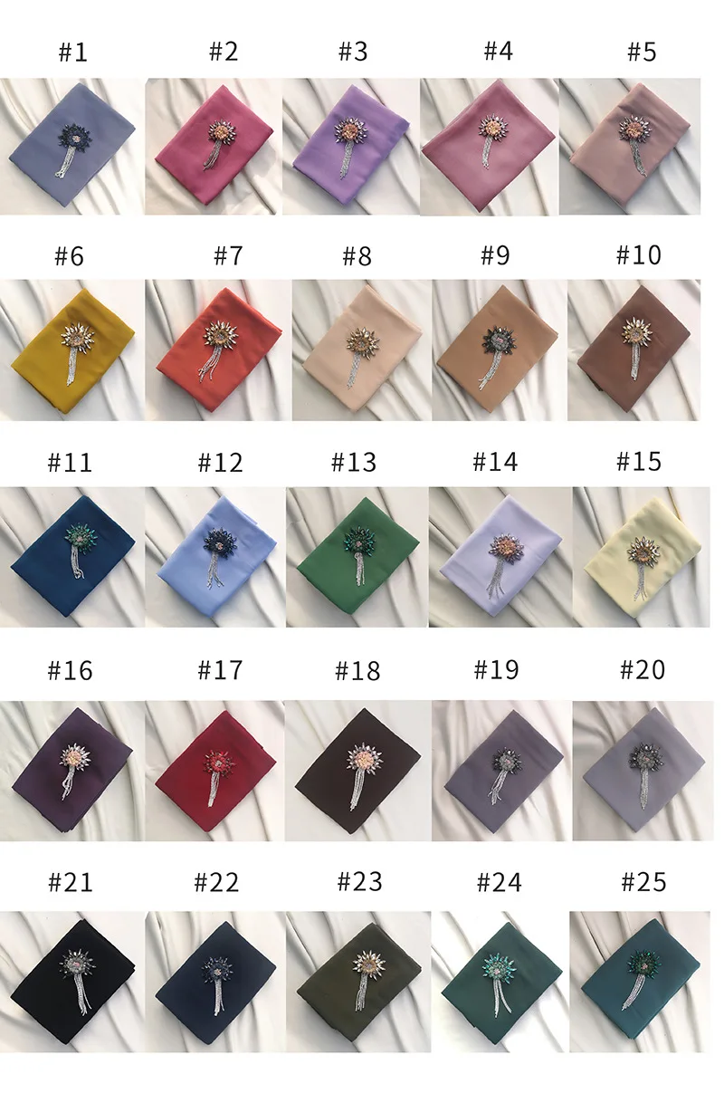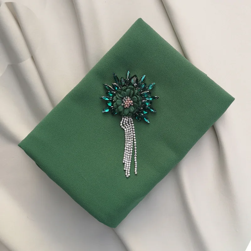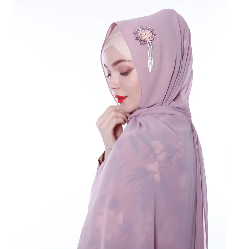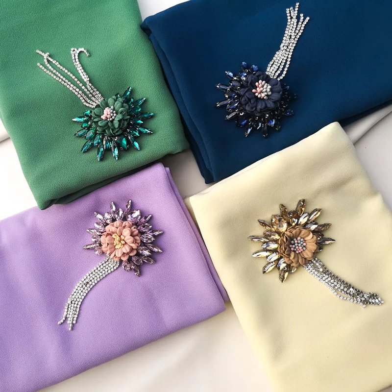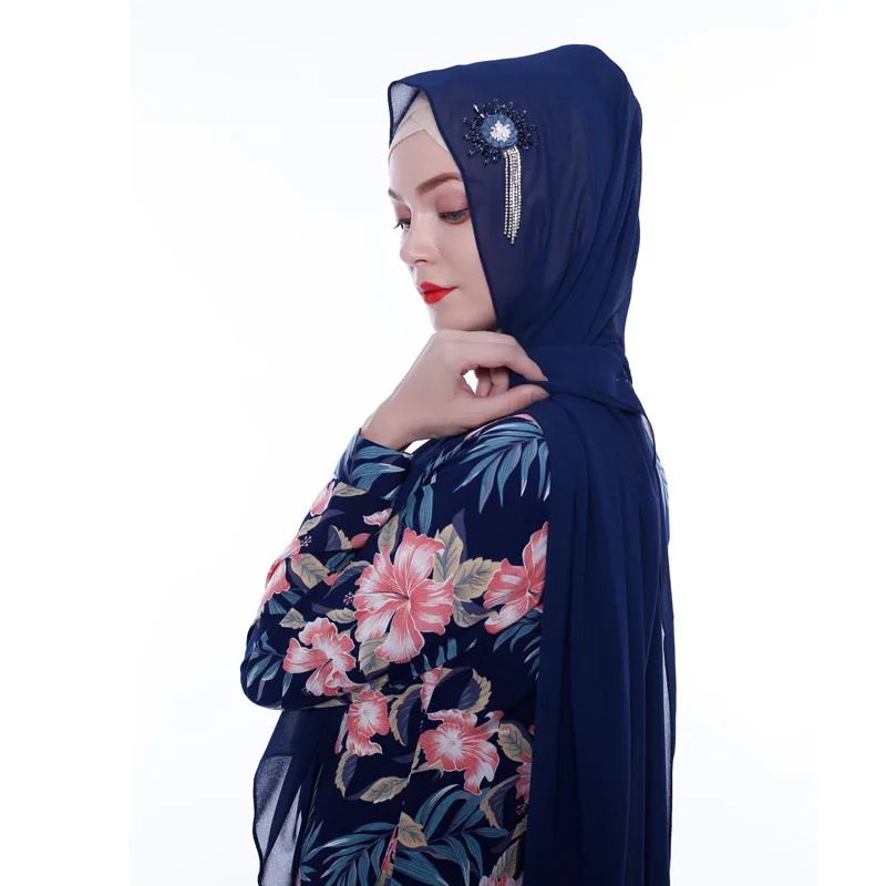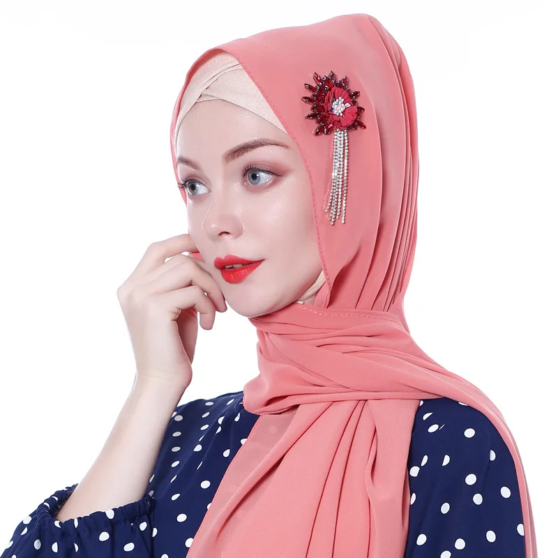 Цветок ручной работы кристалл шифон хиджаб женские шарфы шаль Дубай Малайзия головной убор платок простой шарф драгоценные шарфы