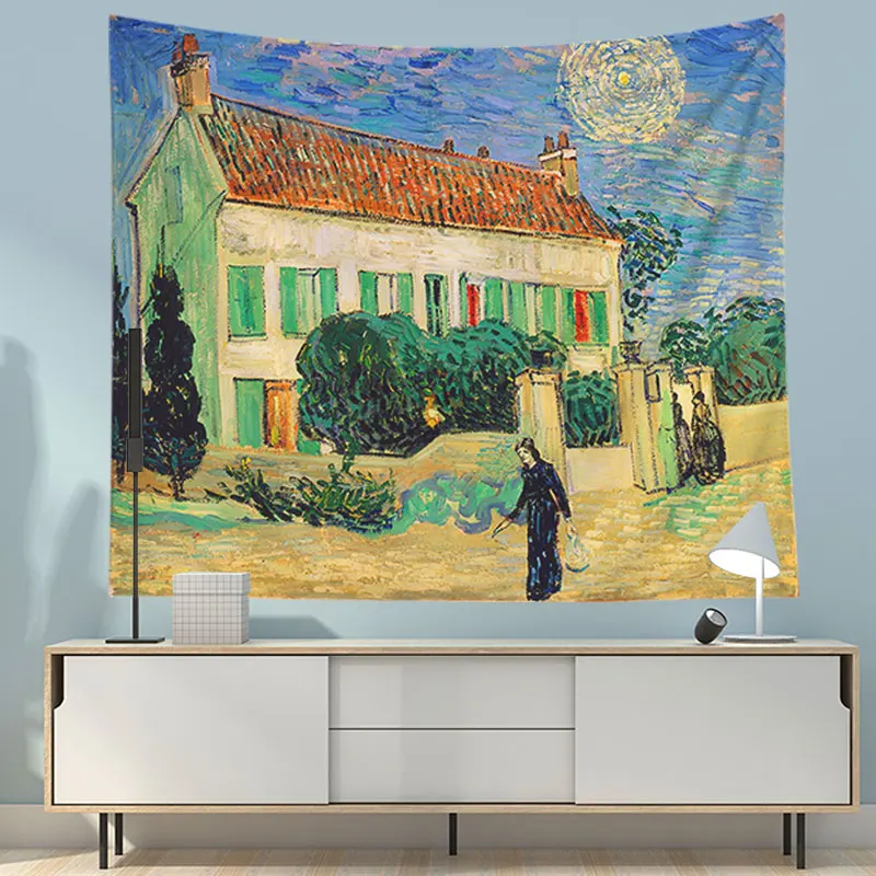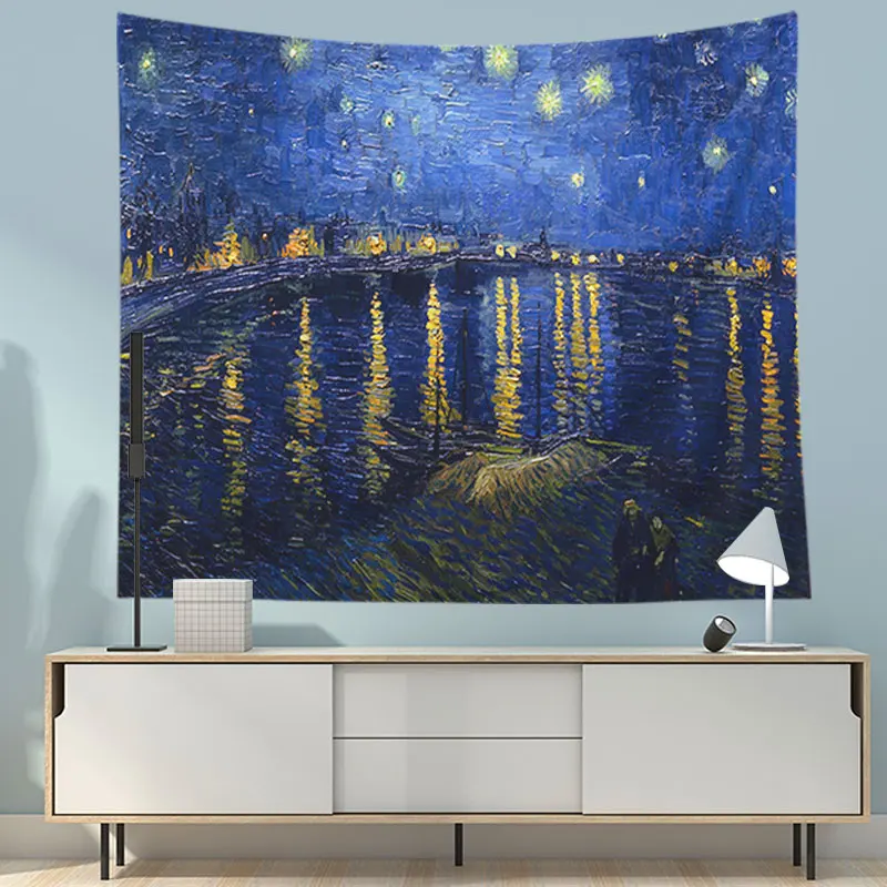 Рисунок: рисунок Ван Гога Ткань: полиэстер Размер: 95*73 см, 150*130 см, 200*150 см Комплектация: гобелен 1 шт. Сезон: весна, лето, осень, зима Подходит для: домашнего декора, настенного ковра, дивана, одеяла, пляжного полотенца, солнцезащитной шали, матраса, скатерти, пледа, коврика для пикника Применяется для: домашнего декора, спальни, гостиной, изголовья кровати, общежития, столовой, путешествий, пляжа, улицы и т. д. Примечания: (1) цвет товара немного отличается от цвета изображения из-за различий светильник и экраном. (2) размер может иметь погрешность 1-2 см, так как измерения выполнены вручную, спасибо за понимание.