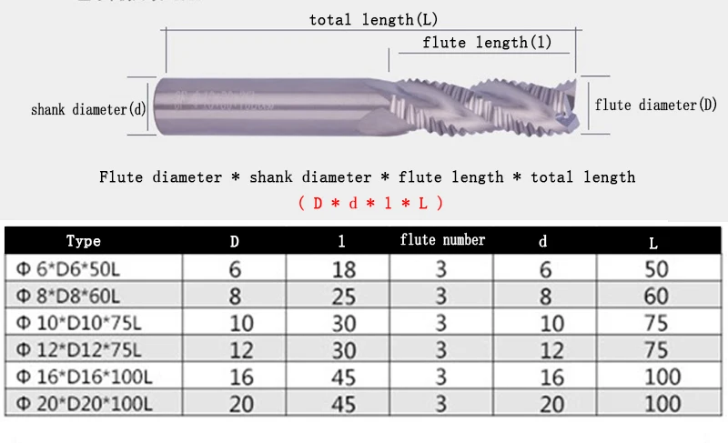 Вышеуказанные Технические характеристики представлены ниже: ---------------------------------- Диаметр флейты * Диаметр хвостовика * длина флейты * Общая длина Единица измерения: мм