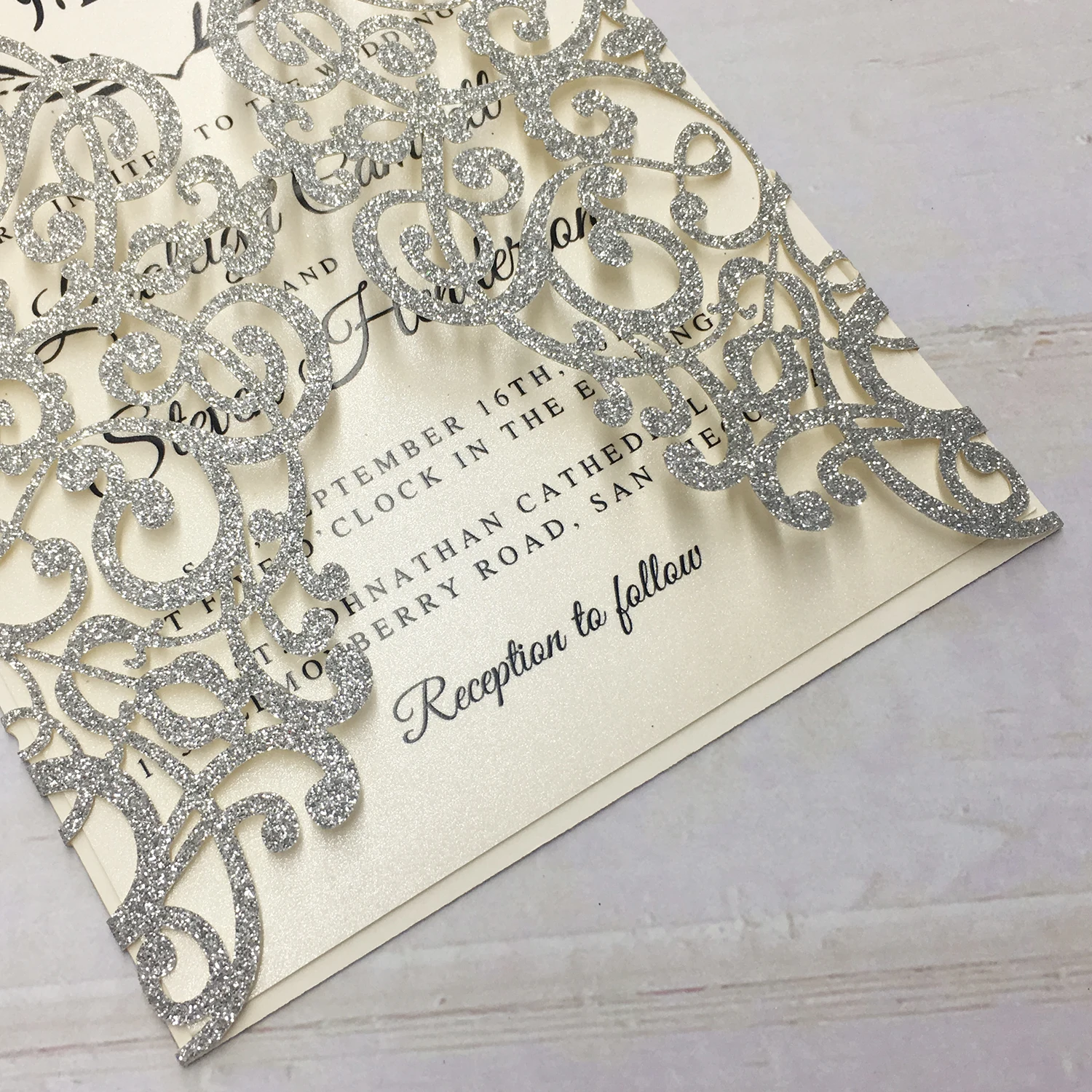 Роскошные блестящие серебряные свадебные приглашения, серые Пригласительные открытки для свадьбы лазерная резка свадебные приглашения с лентой