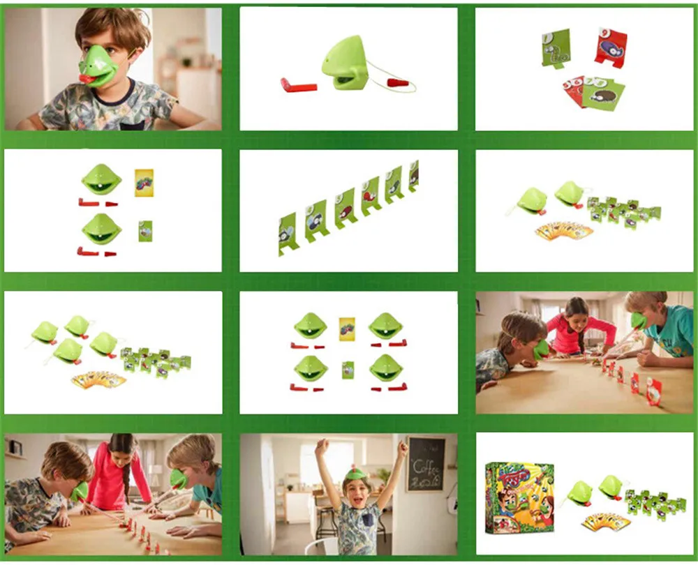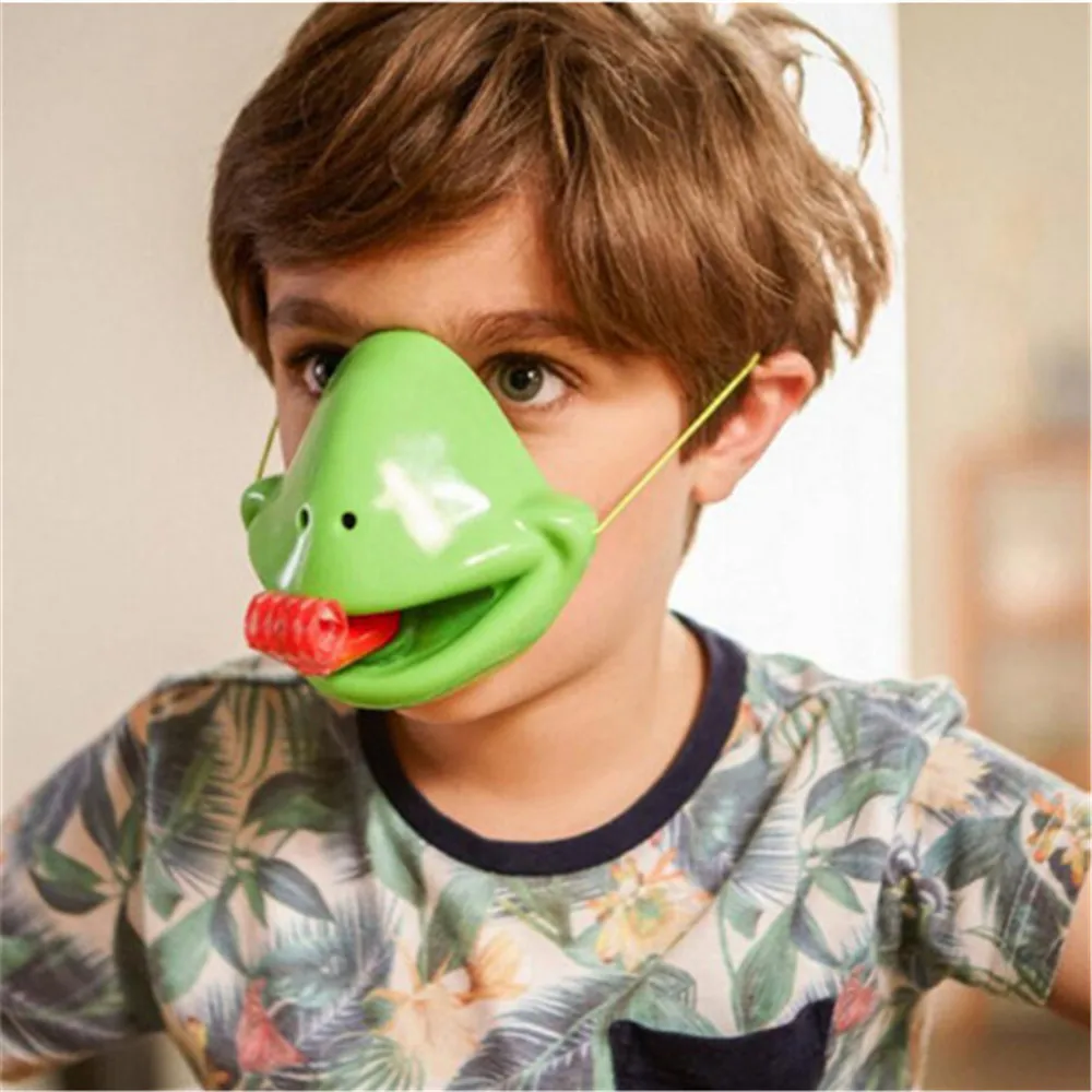 Оба игрока в этой великолепной веселой игры носят маски для рта Хамелеон в комплекте с расширяющимися красными языками. Как и вечерние воздуходувки, наполнитель пластикового языка расстегивает его для быстрого удара.