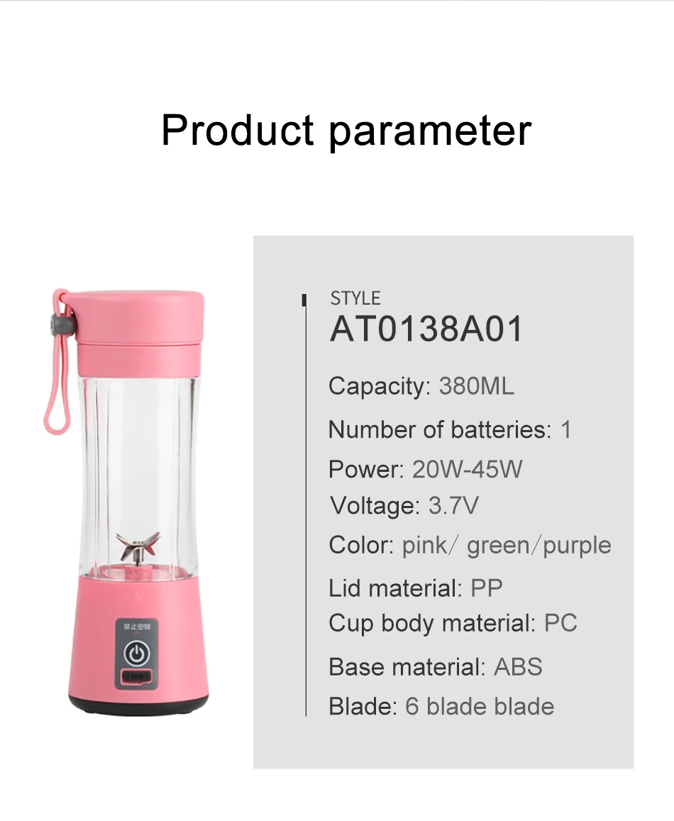 400 мл портативный соковыжималка USB соковыжималка чашка многофункциональный фруктовый миксер шесть лезвий смешивания машина смузи детская еда Прямая поставка