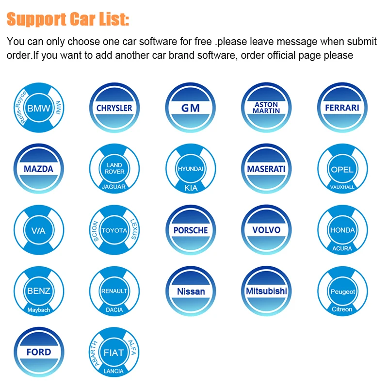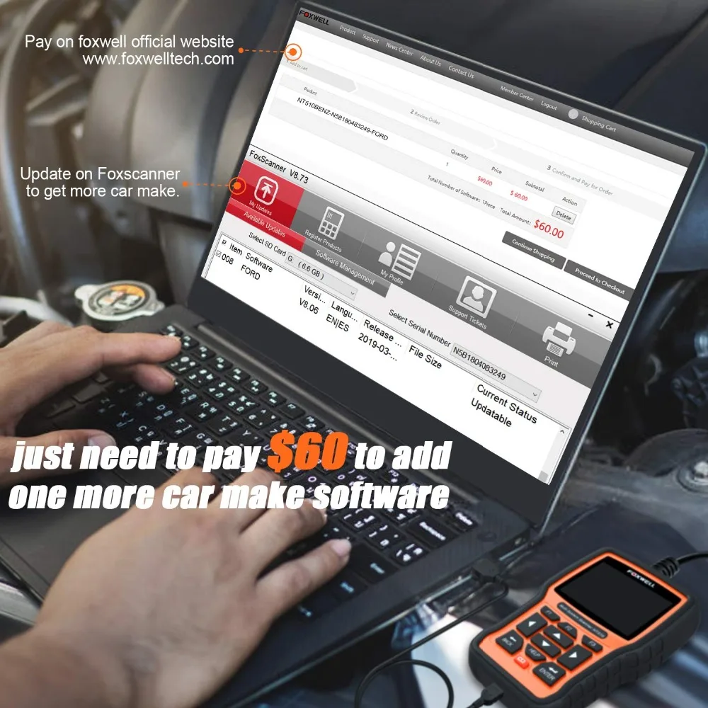 Примечание: Вы можете выбрать только одно автомобильное программное обеспечение бесплатно, если вам нужно добавить дополнительное программное обеспечение, вы можете купить его на официальном сайте foxwell. $60 за одно программное обеспечение