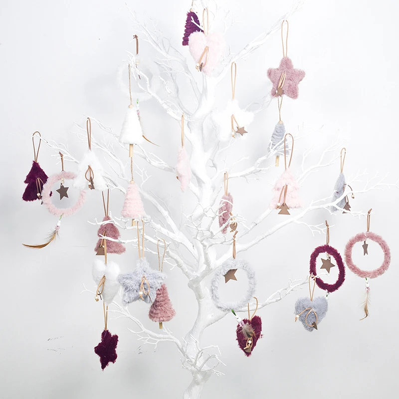 Название: 5 шт./компл. креативные плюшевые Рождественская елка подвесной розового и белого цвета с сердечками и звездами перо Орнамент Рождественские украшения для дома