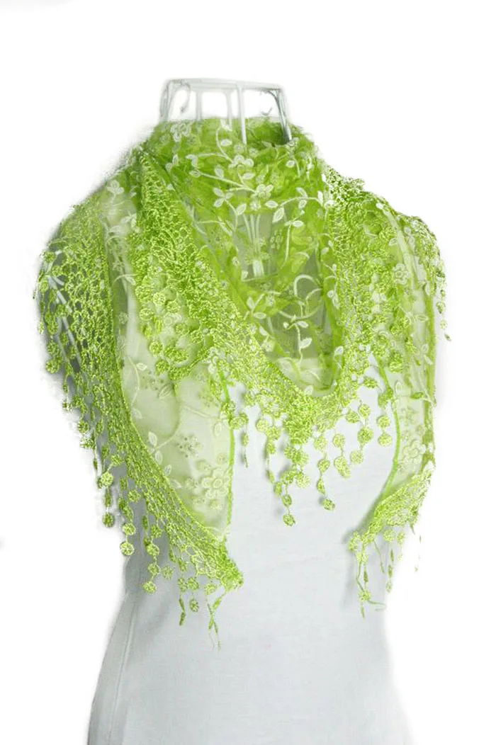 Модный кружевной шарф-шаль с кисточками и цветочным принтом, треугольная мантилия