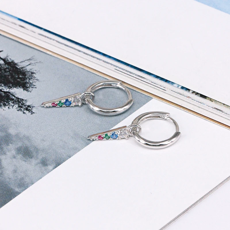 ROXI Радужный Цирконий, Кристальные серьги, 100% Серебро 925 пробы, серьги для женщин, ювелирные изделия, корейские треугольные серьги-гвоздики