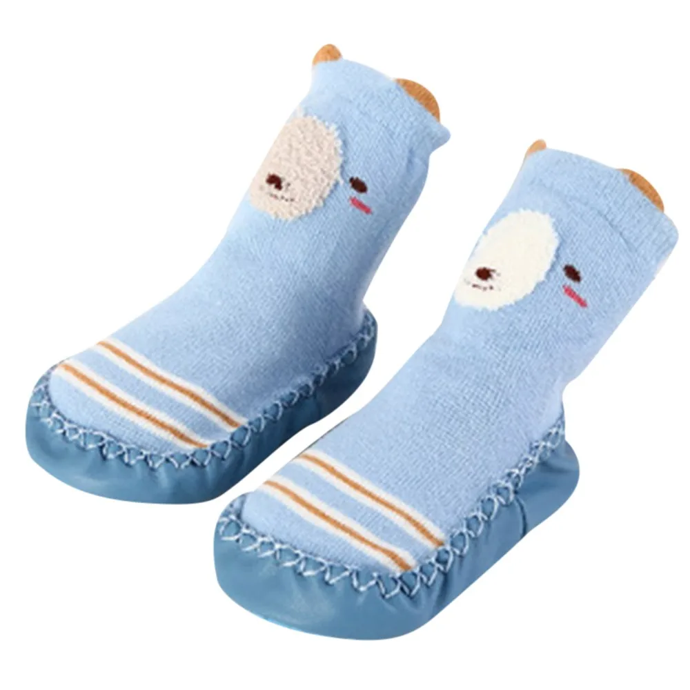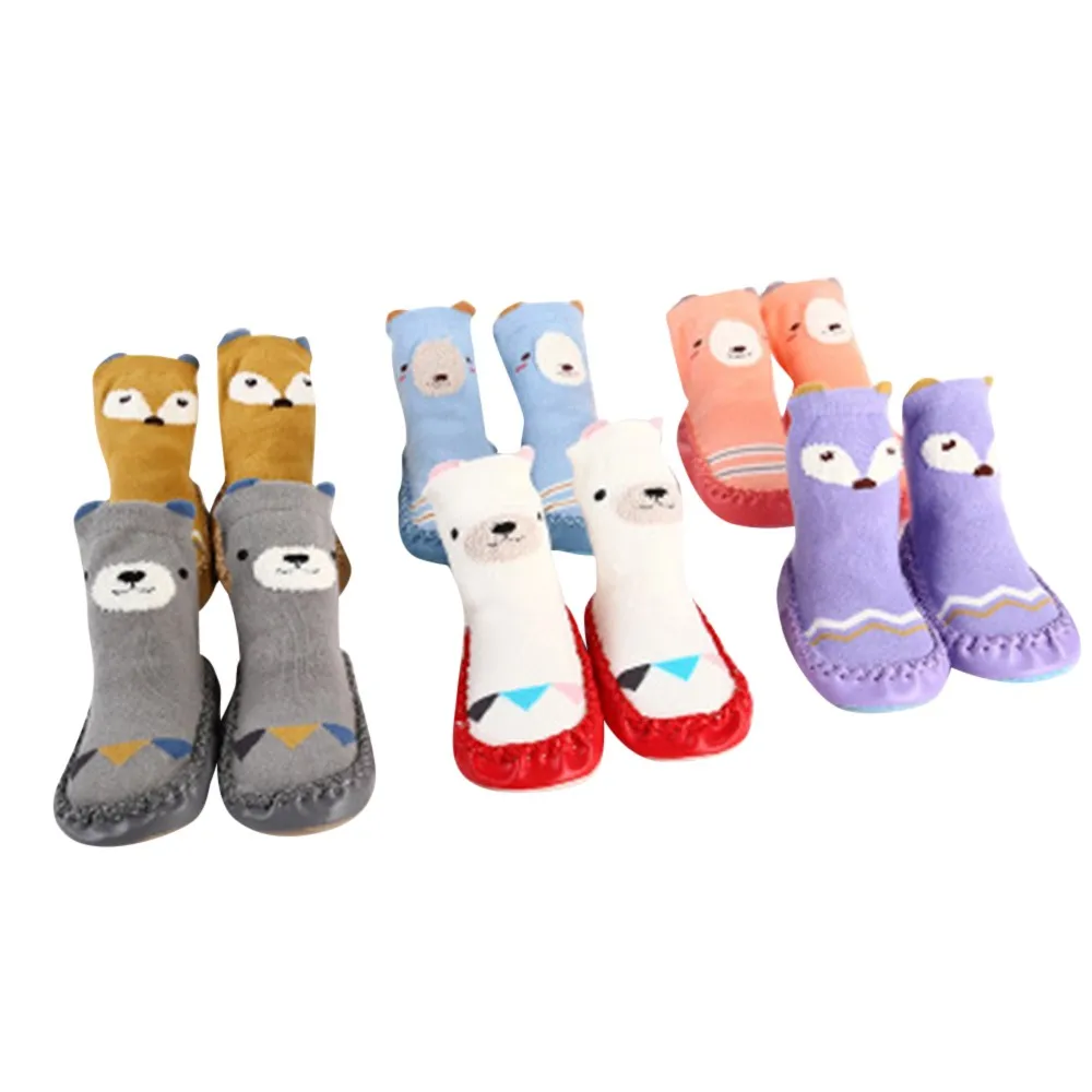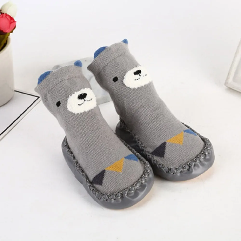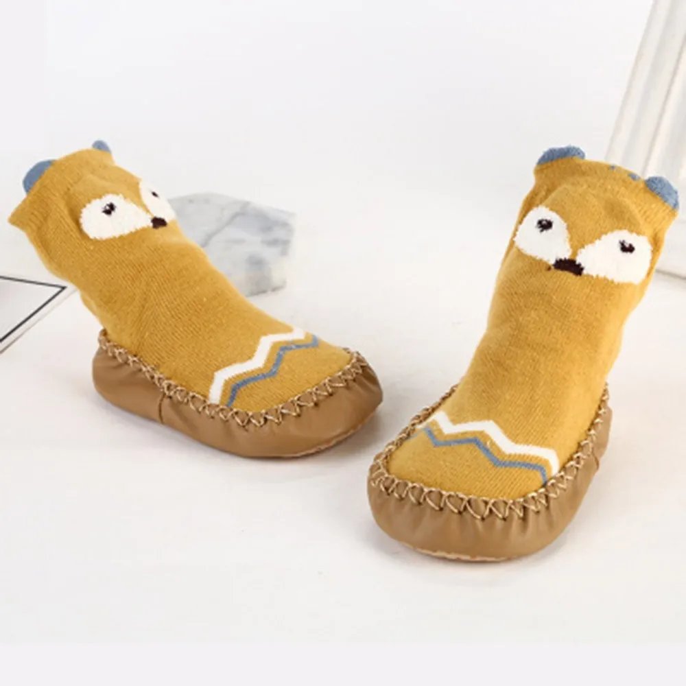 Толстые теплые нескользящие носки с рисунками животных; Тапочки для маленьких девочек и мальчиков; Модная мягкая детская обувь для маленьких девочек