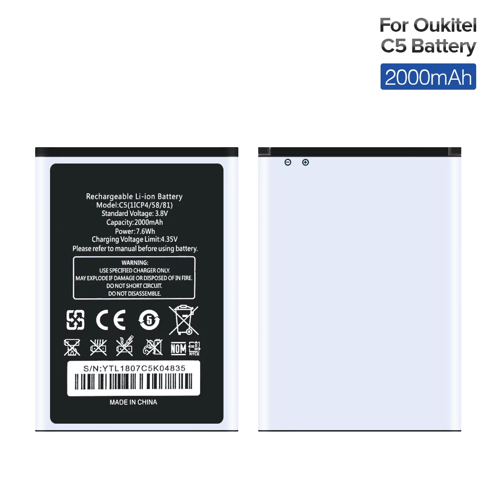 3,8 в 2000 мАч батарея для мобильного телефона 1ICP4/58/81 перезаряжаемая литиевая батарея для Oukitel C5 C5 Pro Сменные Аккумуляторы для смартфонов