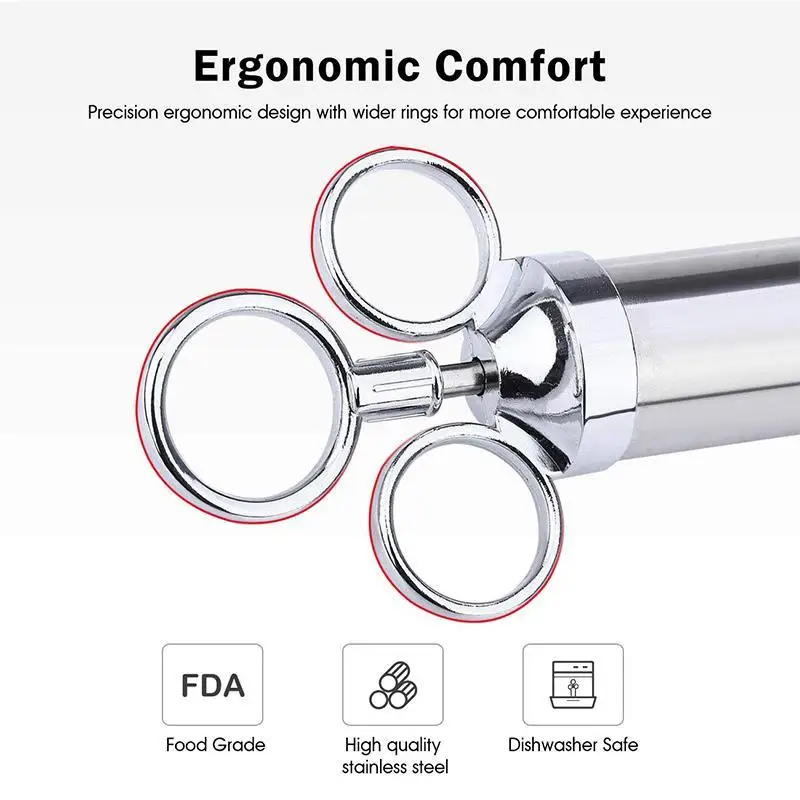 Шприцы для приправ из нержавеющей стали изготовлены из нержавеющей стали 304; Используются для чистки и запечатывания печенья на гриле;